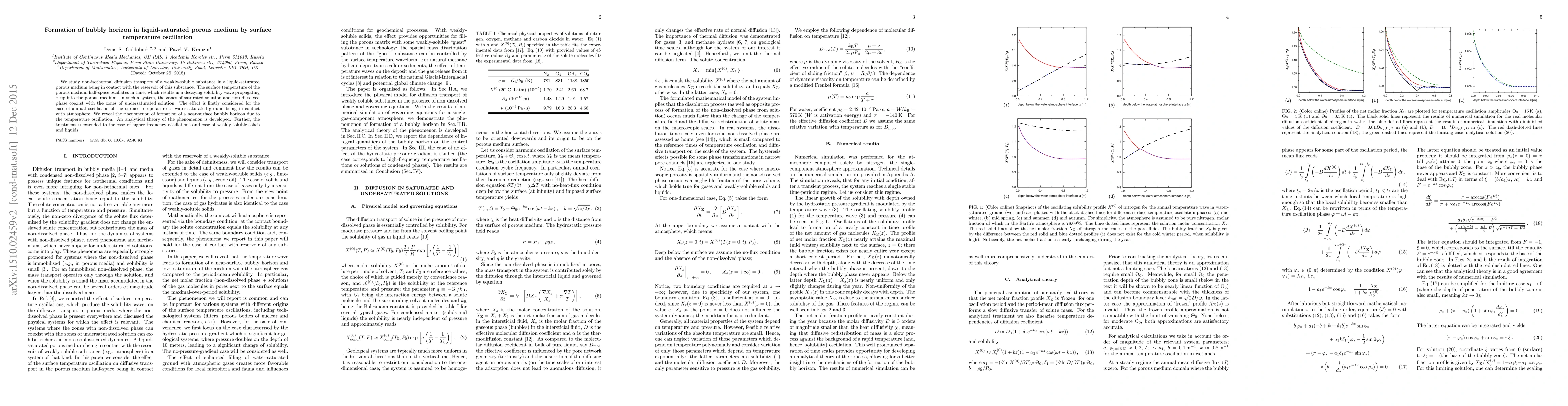We study non-isothermal diffusion transport of a weakly-soluble substance in a liquid-saturated porous medium being in contact with the reservoir of this substance. The surface temperature of the porous medium half-space oscillates in time, which results in a decaying solubility wave propagating deep into the porous medium. In such a system, the zones of saturated solution and non-dissolved phase coexist with the zones of undersaturated solution. The effect is firstly considered for the case of annual oscillation of the surface temperature of water-saturated ground being in contact with atmosphere. We reveal the phenomenon of formation of a near-surface bubbly horizon due to the temperature oscillation. An analytical theory of the phenomenon is developed. Further, the treatment is extended to the case of higher frequency oscillations and case of weakly-soluble solids and liquids.