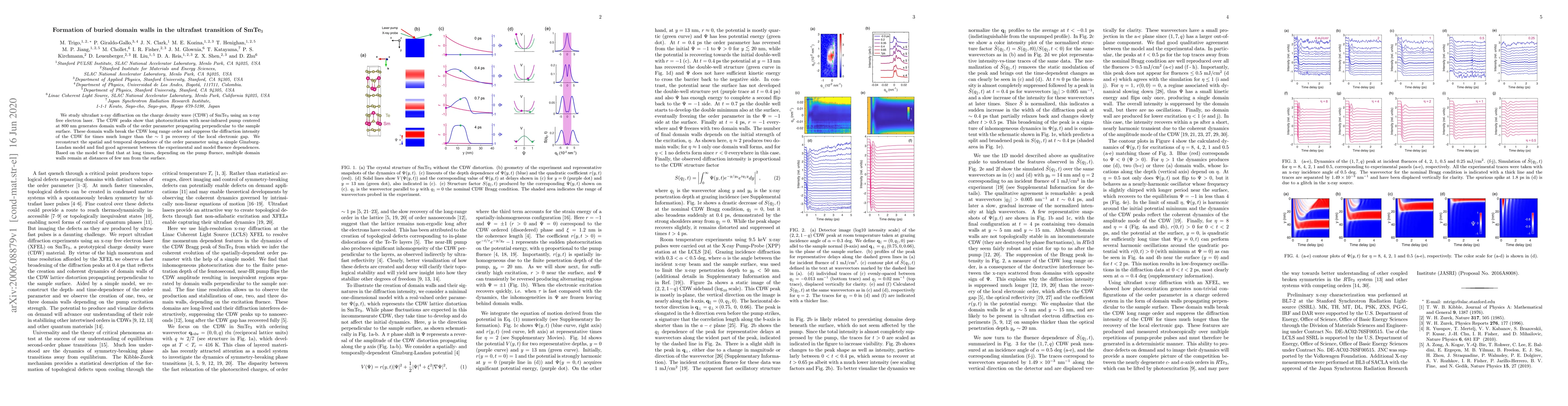 Researchers used ultrafast x-ray diffraction to study domain walls in SmTe$_3$ after photoexcitation, finding that these walls break the charge density wave's long-range order and remain at distances of few nm from the surface.