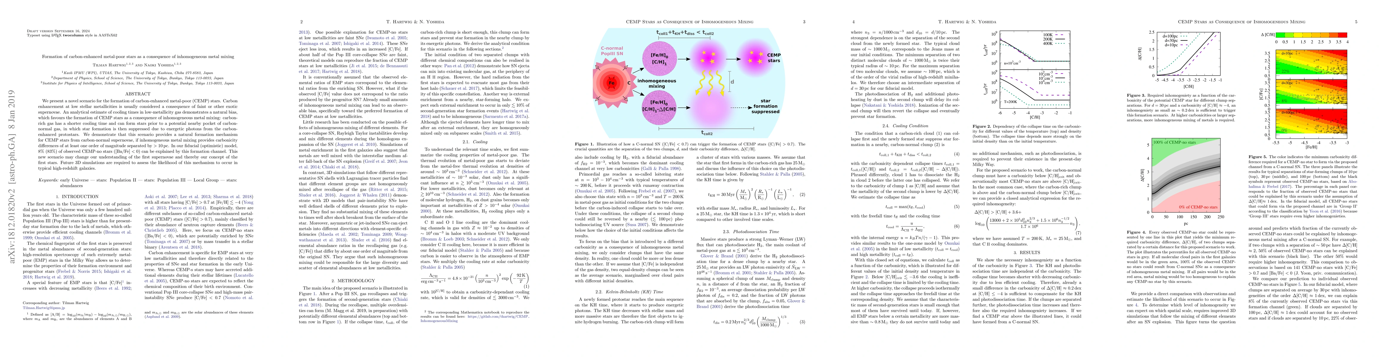 This paper proposes a new formation mechanism for carbon-enhanced metal-poor (CEMP) stars, suggesting that inhomogeneous metal mixing leads to carbon-rich gas cooling faster and forming stars before carbon-normal gas, suppressing subsequent star formation. This scenario could explain the formation of CEMP stars without requiring exotic supernovae.