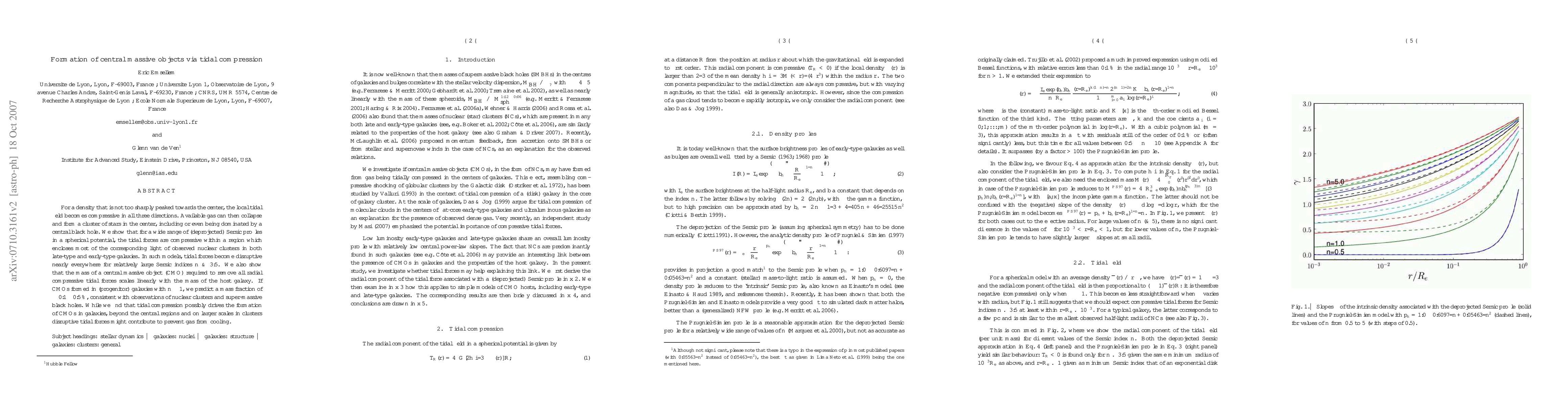 Research shows that tidal forces in galaxies can compress gas to form a central massive object like a black hole, with the mass of the CMO scaling linearly with the host galaxy's mass. This process can explain the formation of super-massive black holes in observed nuclear clusters.