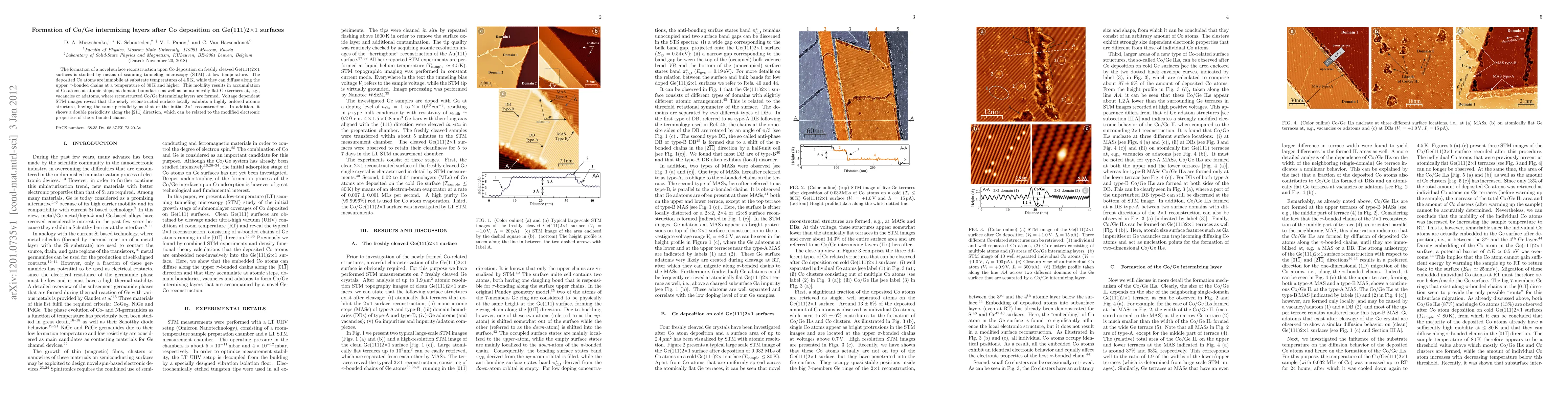 Researchers studied how cobalt atoms rearrange on a freshly cleaved germanium surface when deposited at low temperatures, forming a novel intermixing layer with ordered atomic structure.
