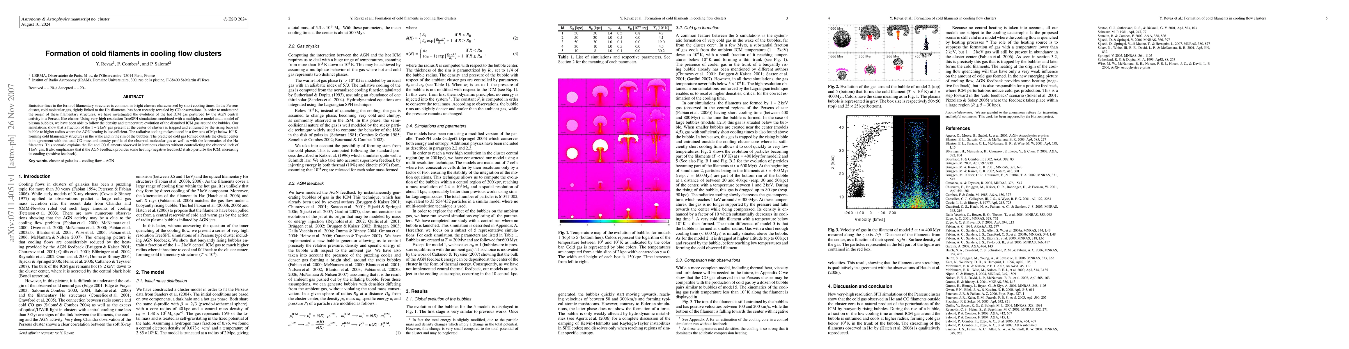 Emission-lines in the form of filamentary structures is common in bright clusters characterized by short cooling times. In the Perseus cluster, cold molecular gas, tightly linked to the H$\alpha$ filaments, has been recently revealed by CO observations. In order to understand the origin of these filamentary structures, we have investigated the evolution of the hot ICM gas perturbed by the AGN central activity in a Perseus like cluster. Using very-high resolution TreeSPH simulations combined with a multiphase model and a model of plasma bubbles, we have been able to follow the density and temperature evolution of the disturbed ICM gas around the bubbles. Our simulations show that a fraction of the $1-2 \rm{keV}$ gas present at the center of clusters is trapped and entrained by the rising buoyant bubble to higher radius where the AGN heating is less efficient. The radiative cooling makes it cool in a few tens of Myr below $10^4 \rm{K}$, forming cold filamentary structures in the wake and in the rim of the bubbles.