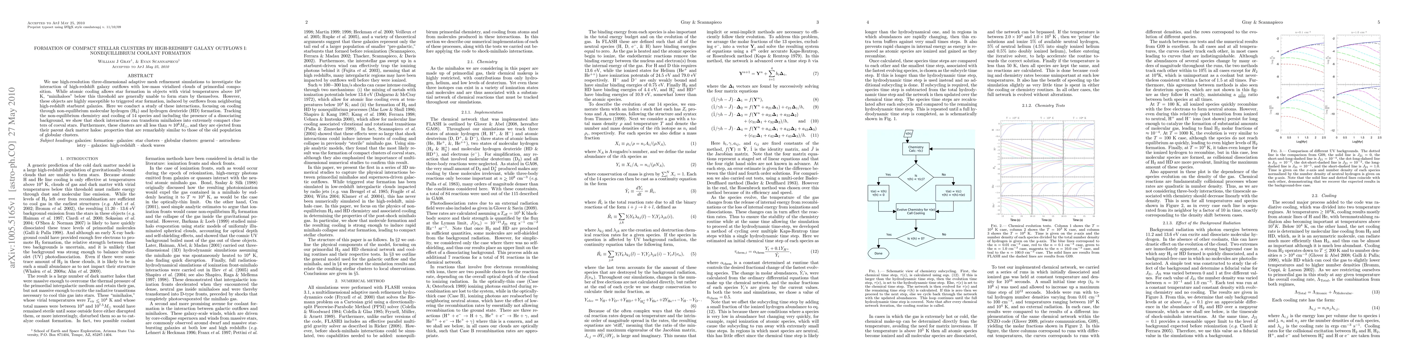 This paper investigates how high-redshift galaxy outflows trigger star formation in low-mass primordial clouds, leading to the formation of compact stellar clusters through non-equilibrium coolant formation, specifically molecular hydrogen and hydrogen deuteride. The study reveals that these clusters, ejected from their parent dark matter halos, resemble old globular clusters in size and composition.