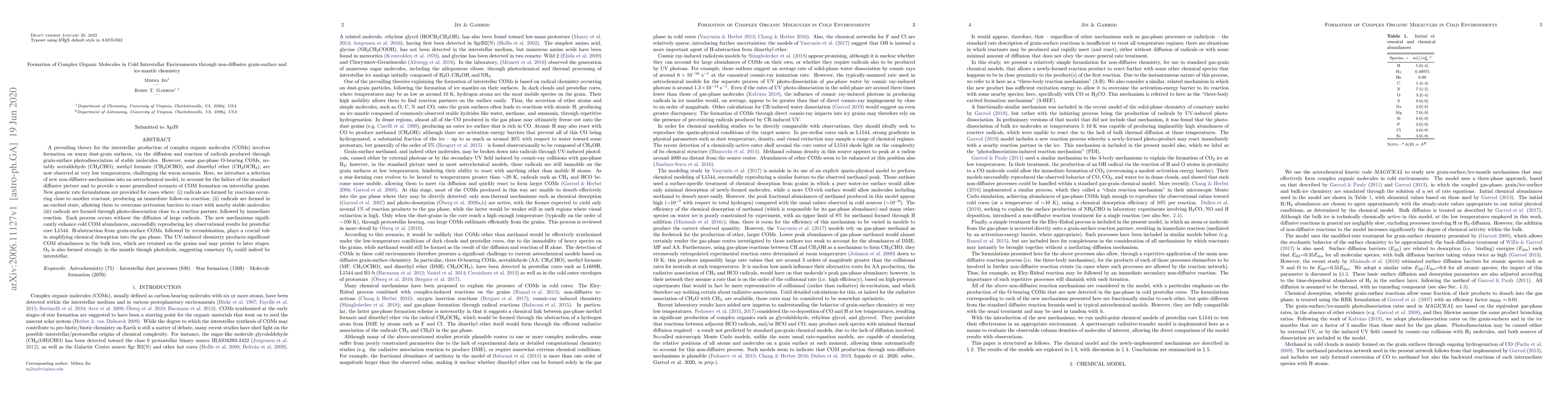 This paper explores the formation of complex organic molecules in cold interstellar environments through non-diffusive grain-surface and ice-mantle chemistry. It proposes new mechanisms that enhance complex organic molecule abundances without requiring diffusion of large radicals, successfully explaining the presence of observed gas-phase O-bearing COMs at low temperatures.