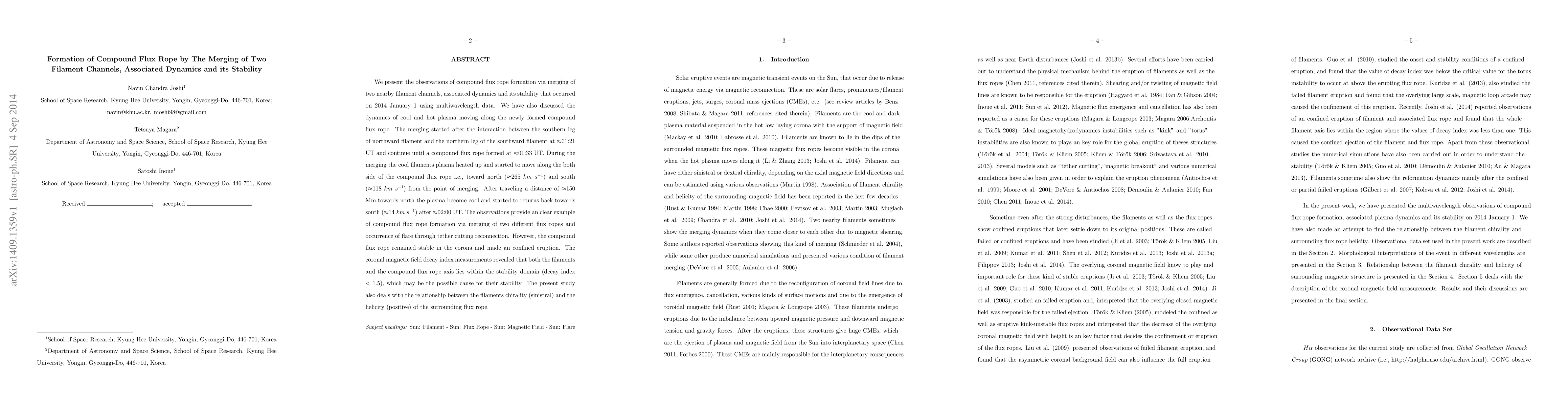 Researchers observed a compound flux rope forming when two nearby filament channels merged in space, demonstrating its stability and movement dynamics.