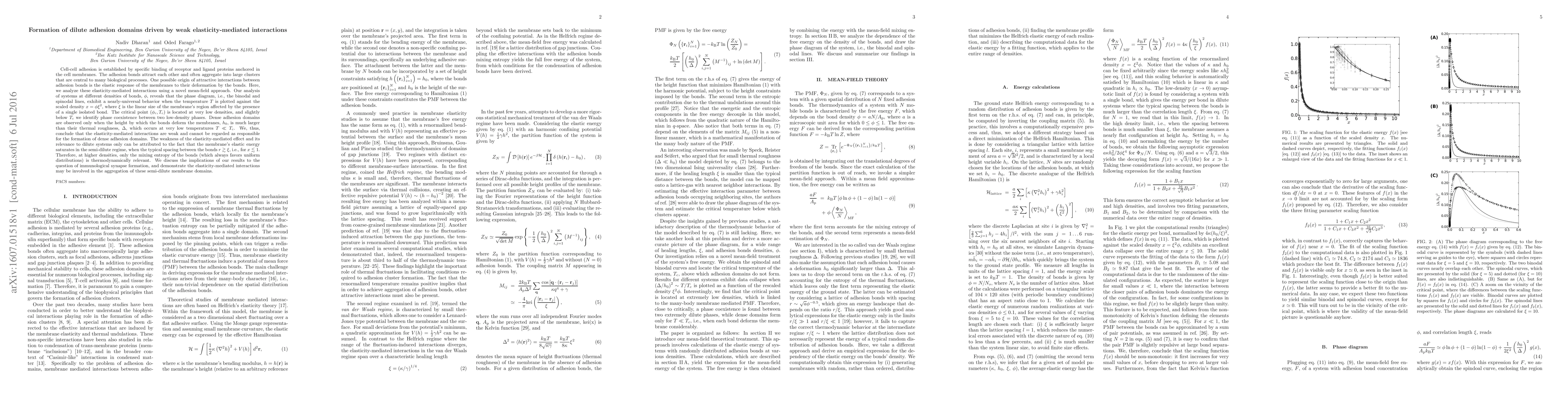 Cell-cell adhesion is established by specific binding of receptor and ligand proteins. The adhesion bonds attract each other and often aggregate into large clusters that are central to many biological processes. One possible origin of attractive interactions between adhesion bonds is the elastic response of the membranes to their deformation by the bonds. Here, we analyze these elasticity-mediated interactions using a novel mean-field approach. Analysis of systems at different densities of bonds, $\phi$, reveals that the phase diagram exhibits a nearly-universal behavior when the temperature $T$ is plotted vs. the scaled density $x=\phi \xi^2$, where $\xi$ is the linear size of the membrane's region affected by a single bond. The critical point $(\phi_c,T_c)$ is located at very low densities and slightly below $T_c$ we identify phase coexistence between two low-density phases. Dense domains are observed only when the height by which the bonds deform the membranes, $h_0$, is much larger than their thermal roughness, $\Delta$, which occurs at very low temperatures $T\ll T_c$. We conclude that the elasticity-mediated interactions are weak and cannot be regarded as responsible for the formation of dense adhesion domains. The weakness of the elasticity-mediated effect and its relevance to dilute systems only can be attributed to the fact that the membrane's elastic energy saturates in the semi-dilute regime, when the typical spacing between the bonds $r\gtrsim \xi$, i.e., for $x\lesssim 1$. Therefore, at higher densities, only the mixing entropy of the bonds (which favors uniform distributions) is thermodynamically relevant. We discuss the implications of our results to the question of immunological synapse formation, and demonstrate the elasticity-mediated interactions may be involved in the aggregation of these semi-dilute membrane domains.