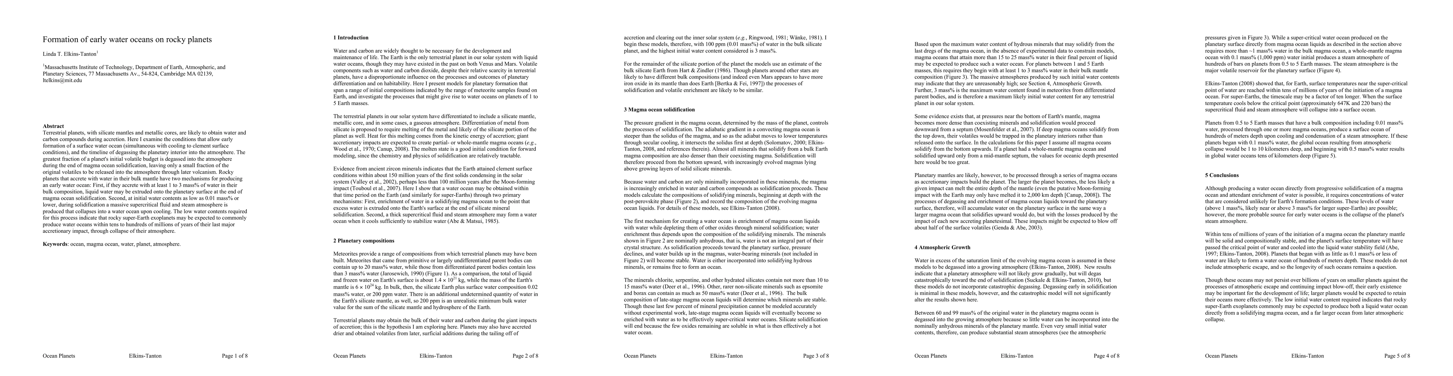 This paper explores the conditions and mechanisms for the early formation of water oceans on rocky planets, focusing on the role of initial water content during accretion. It concludes that planets with sufficient initial water content can form oceans either through extrusion of liquid water or by collapsing a supercritical fluid atmosphere, suggesting that many rocky exoplanets may develop oceans within tens to hundreds of millions of years.