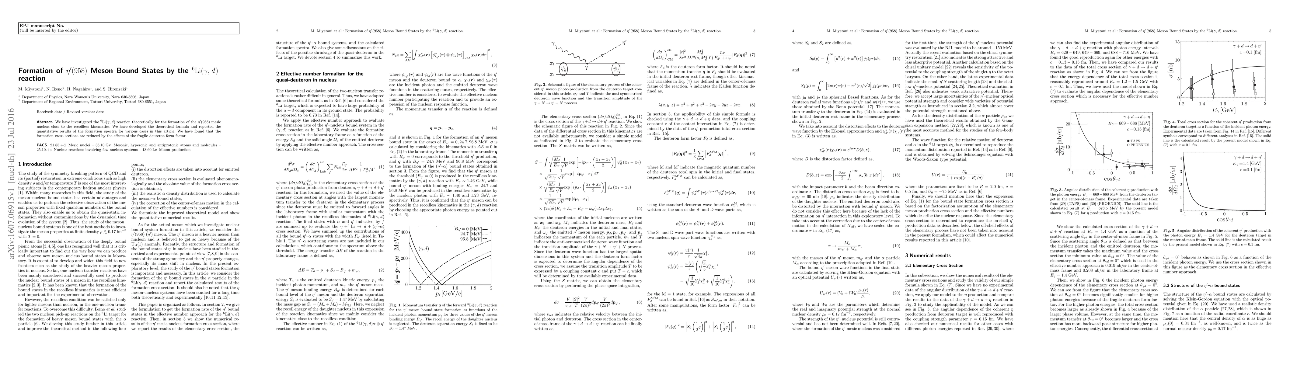 This paper theoretically investigates the 6Li(gamma,d) reaction for forming eta'(958) mesic nucleus, finding reduced formation cross sections due to the deuteron form factor effects. The study provides quantitative results for the reaction's formation spectra.