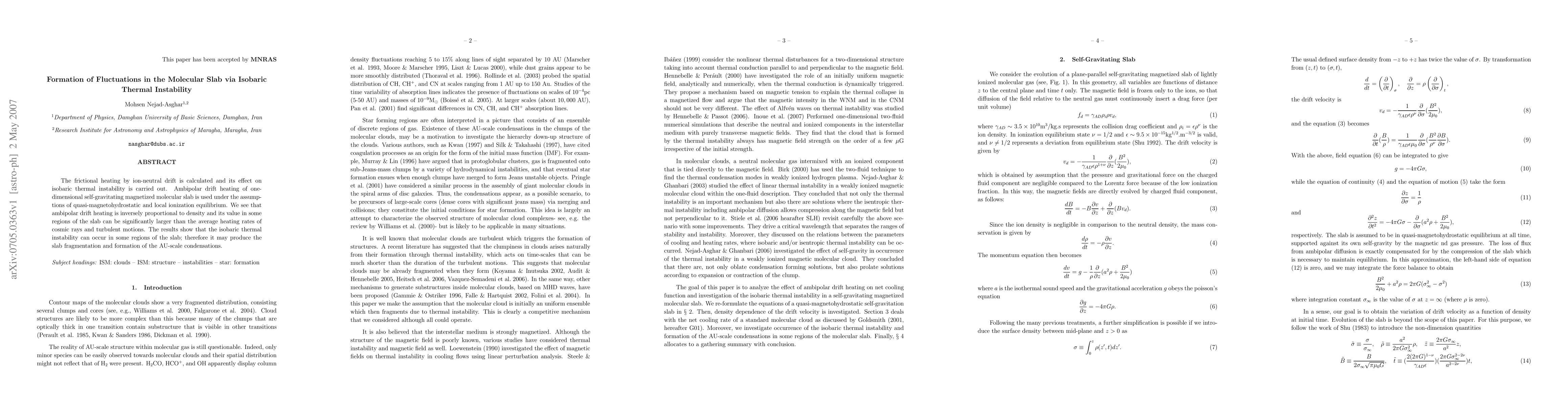 This paper investigates the role of ambipolar drift heating in isobaric thermal instability within a one-dimensional self-gravitating magnetized molecular slab, revealing that such heating can significantly exceed average cosmic ray and turbulent heating rates. The study concludes that this instability can lead to slab fragmentation and the formation of AU-scale condensations.