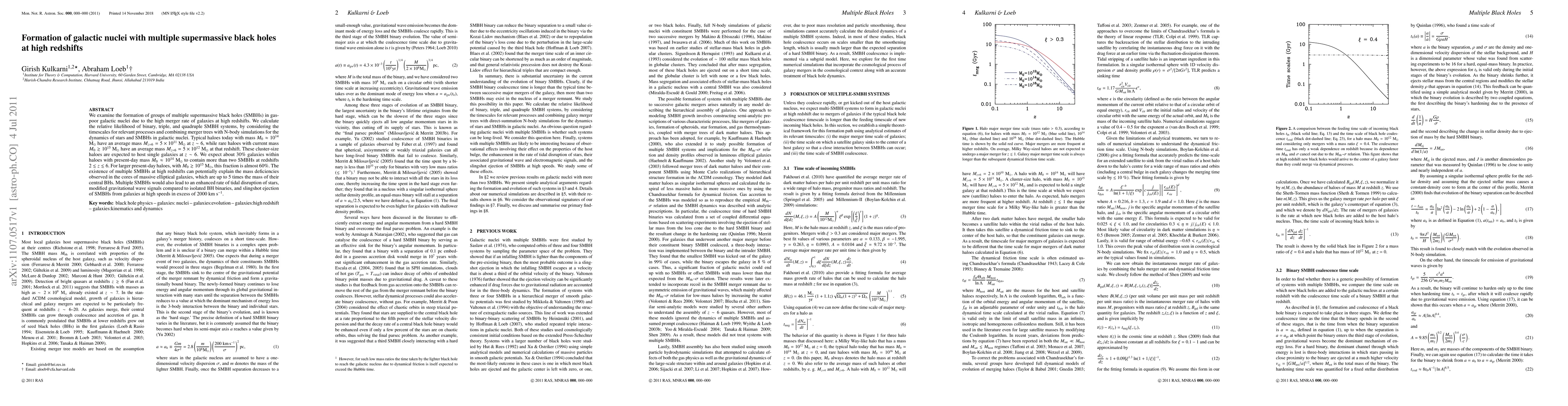The paper presents a comprehensive analysis of SMBH mergers in galactic nuclei using high-resolution N-body simulations, combining merger trees with N-body dynamics to study the formation and evolution of multiple SMBH systems.