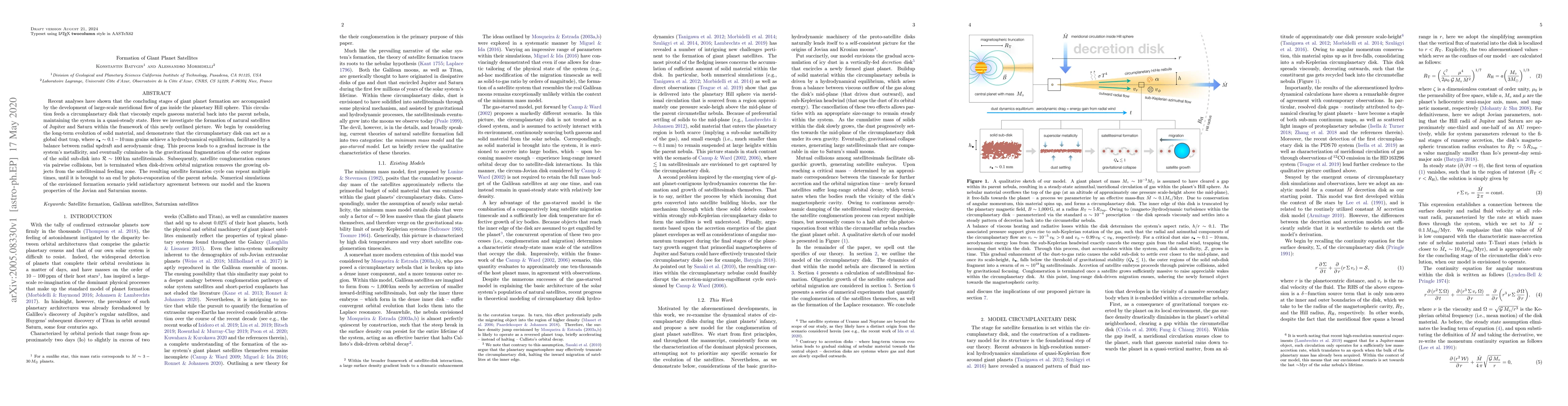 The paper proposes a new model for the formation of giant planet satellites, suggesting that a circumplanetary disk plays a key role in their creation through gravitational fragmentation and collisions, ultimately yielding the known properties of Jupiter and Saturn's moons.