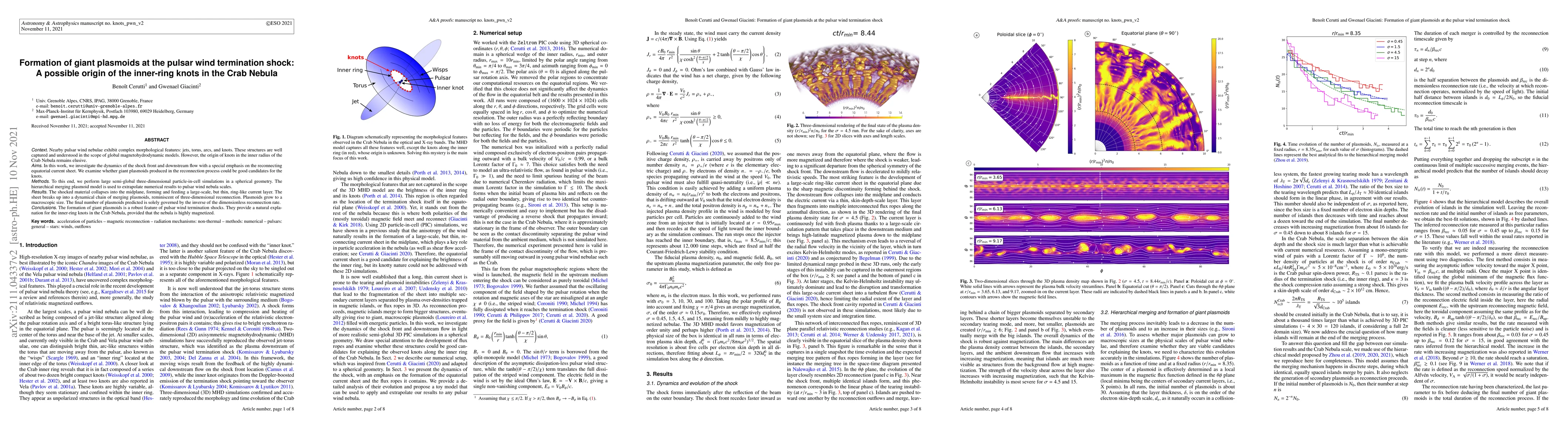 Researchers propose that giant plasmoids formed at the shock front of pulsar wind termination shocks could explain the formation of inner-ring knots in the Crab Nebula, a phenomenon previously elusive.