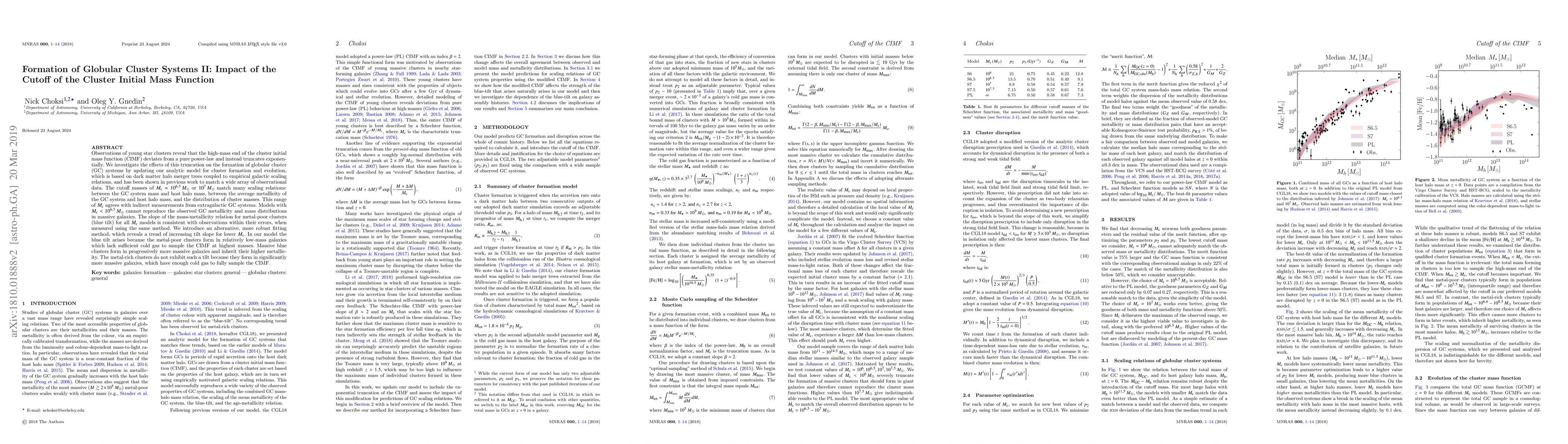 This paper examines the impact of the exponential truncation of the cluster initial mass function (CIMF) on globular cluster (GC) system formation. The study shows that cutoff masses around $10^{6.5} M_{\odot}$ to $10^{7} M_{\odot}$ align well with observed scaling relations and GC distributions, while lower cutoffs fail to match observed GC metallicity and mass distributions in massive galaxies.