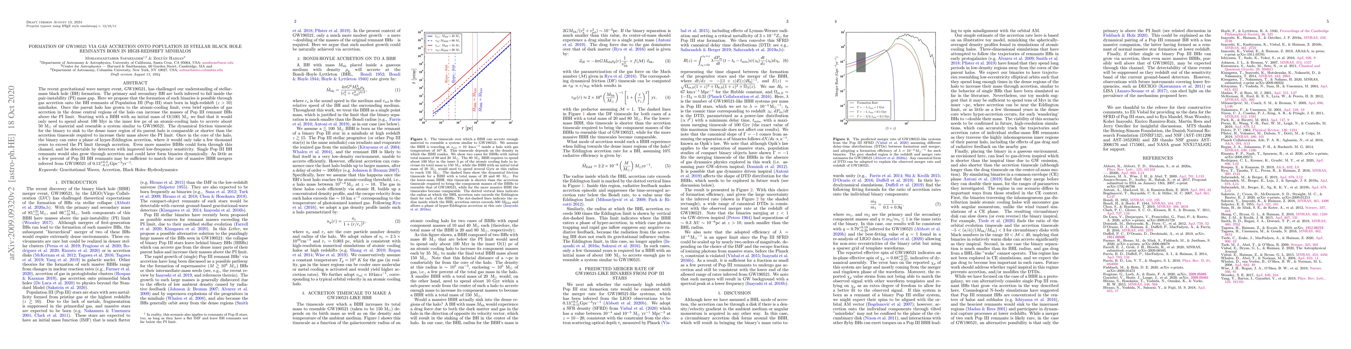 The recent gravitational wave merger event, GW190521, has challenged our understanding of the stellar-mass black hole (BH) formation. The primary and secondary BH are both inferred to fall inside the pair-instability (PI) mass gap. Here we propose that the formation of such binaries is possible through gas accretion onto the BH remnants of Population III (Pop~III) stars born in high-redshift ($z>10$) minihalos. Once the parent halo has grown to the atomic-cooling limit, even brief episodes of gas accretion in the dense central regions of the halo can increase the masses of Pop~III remnant BHs above the PI limit. Starting with a BBH with an initial mass of O(100) ${\rm M_{\odot}}$ we find that it would only need to spend about 100~Myr in the inner few pc of an atomic-cooling halo to accrete about 50~${\rm M_{\odot}}$ of material and resemble a system similar to GW190521. The dynamical friction timescale for the binary to sink to the dense inner region of its parent halo is comparable or shorter than the accretion timescale required to increase their mass above the PI limit. Once in the core of the halo, the binary can enter a phase of hyper-Eddington accretion, where it would only take a few thousand years to exceed the PI limit through accretion. Even more massive BBHs could form through this channel, and be detectable by detectors with improved low-frequency sensitivity. Single Pop~III BH remnants would also grow through accretion and could later form binaries dynamically. As little as a few percent of Pop~III BH remnants may be sufficient to match the rate of massive BBH mergers inferred from GW190521 of $0.13^{+0.3}_{-0.11}\rm Gpc^{-3} yr^{-1}$.