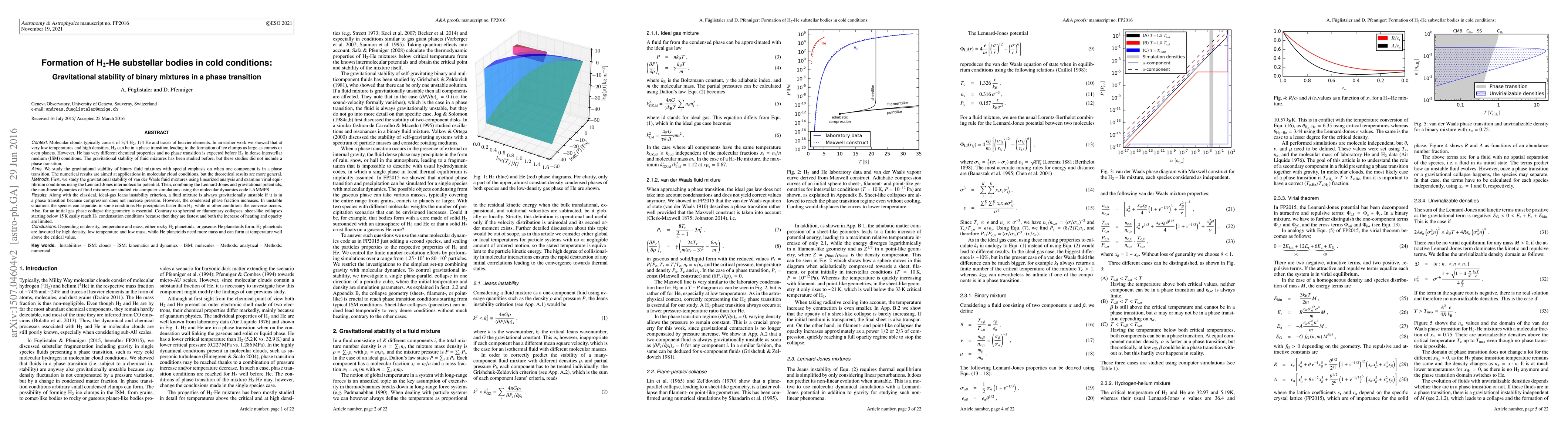 Researchers studied the formation of H2-He substellar bodies in cold conditions, finding that He can form planetoids under specific density, temperature, and mass conditions, while H2 forms at higher densities and lower temperatures.