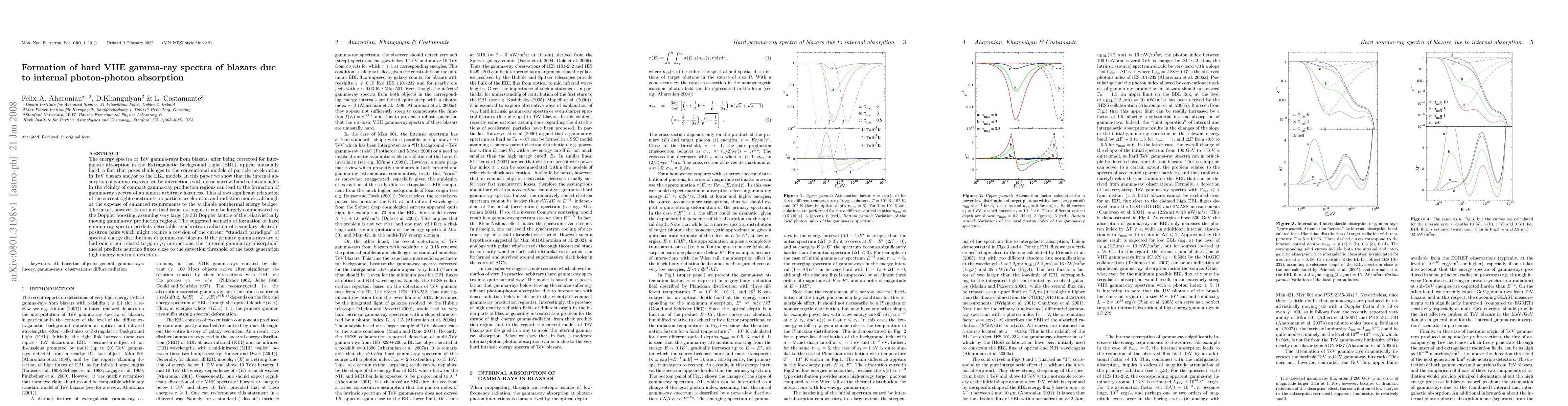 Blazars' TeV gamma-ray spectra appear hard due to internal photon-photon absorption, challenging current models, but can be explained with dense radiation fields near production regions.