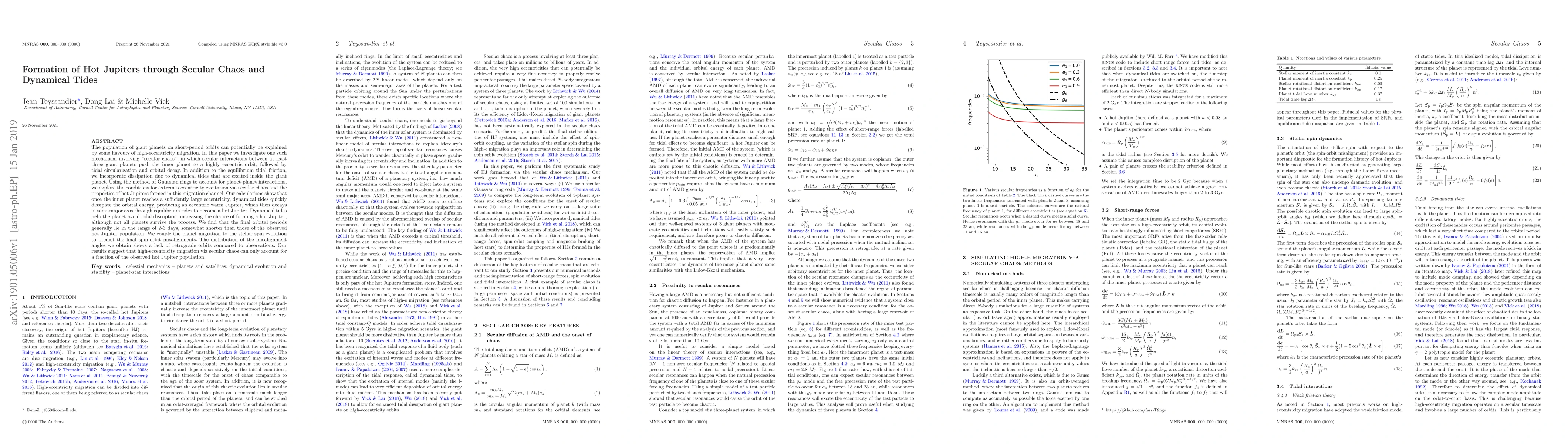 A Gaussian ring secular code was used to simulate the evolution of 3-planetary systems, incorporating dynamical tides from Vicketal.