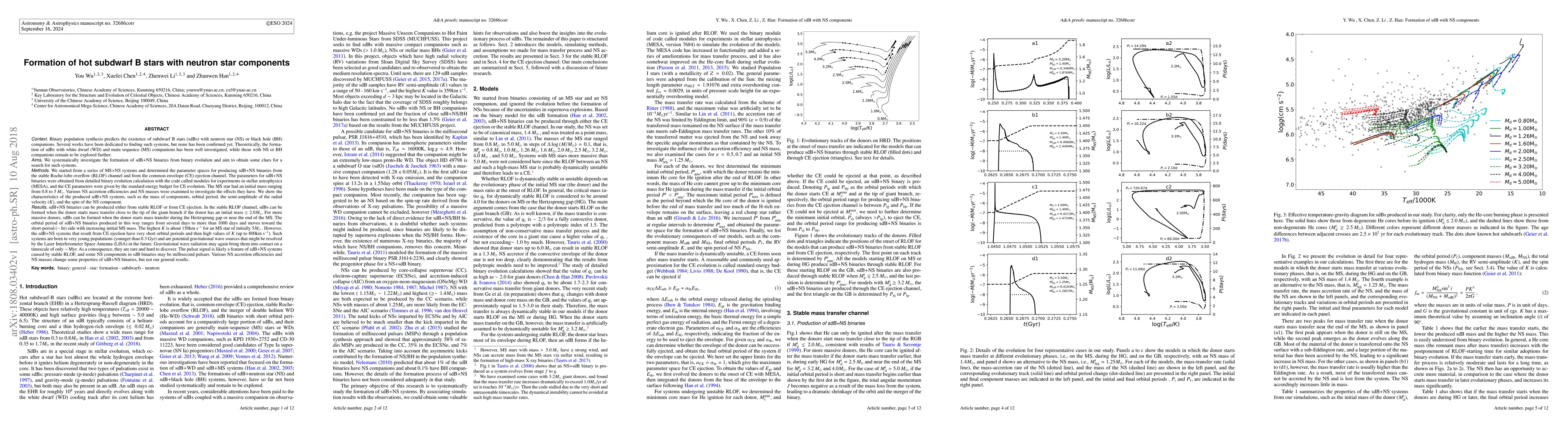 This paper investigates the formation of subdwarf B (sdB) stars with neutron star (NS) companions through binary evolution, identifying parameter spaces for sdB+NS binaries via stable Roche-lobe overflow and common envelope ejection channels. It finds that sdB+NS systems from stable RLOF have orbital periods ranging from several days to over 1000 days, while those from common envelopes have very short periods and high radial velocity semi-amplitudes, making them rare and potential gravitational wave sources.