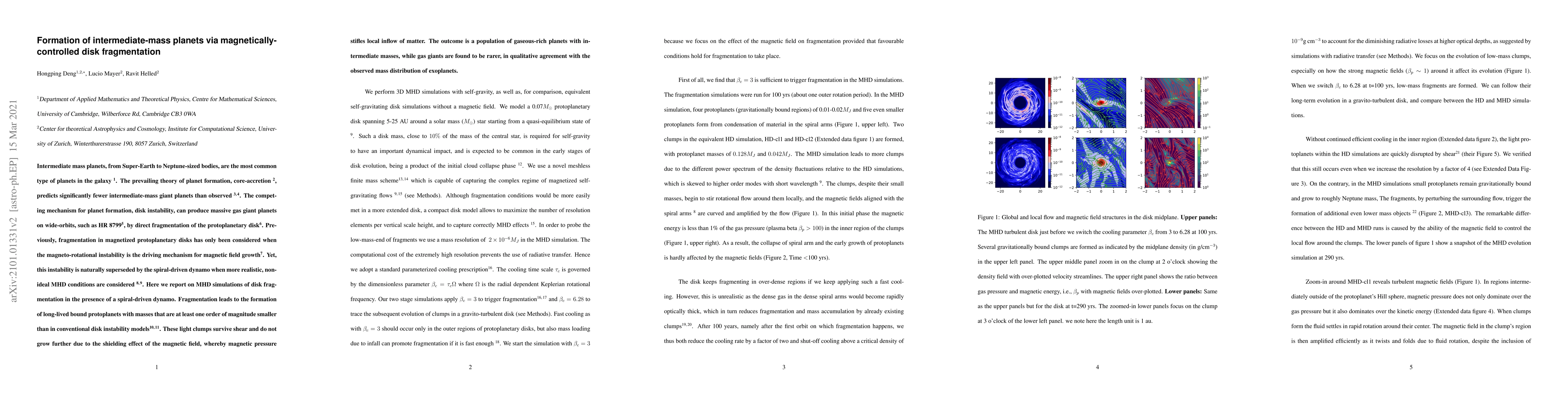 This paper proposes that intermediate-mass planets form through magnetically-controlled disk fragmentation driven by a spiral-driven dynamo, rather than the conventional magneto-rotational instability. The simulations show that this mechanism produces smaller, long-lived protoplanets that align with the observed distribution of intermediate-mass exoplanets.