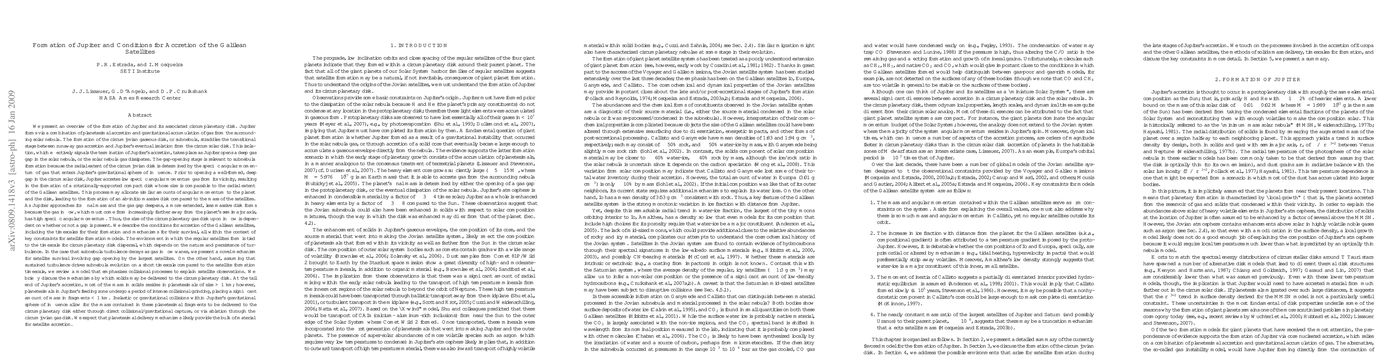 This paper provides an overview of Jupiter's formation through planetesimal accretion and gas accumulation, highlighting the critical role of the circumplanetary disk in the transition from gas accretion to isolation. It also discusses the conditions and mechanisms for the accretion of the Galilean satellites, considering factors like turbulence and collisional processes in the circumplanetary disk.