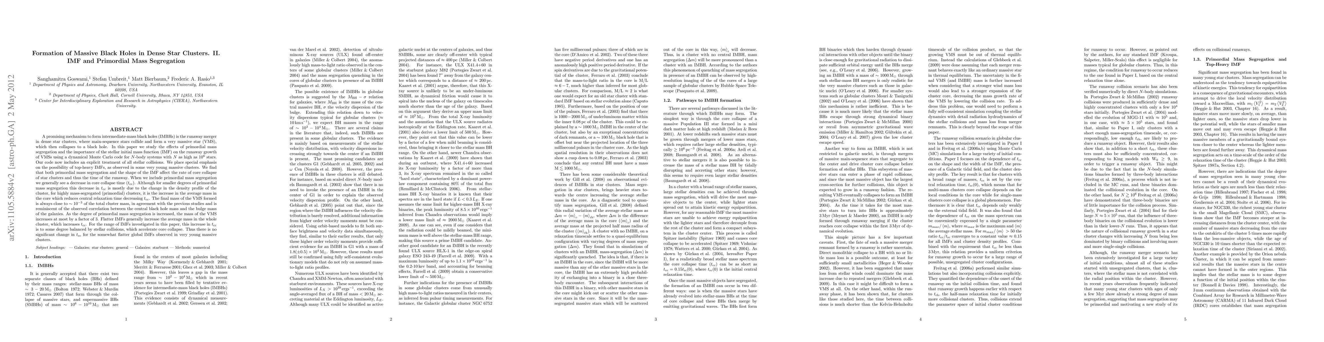 This paper explores the formation of intermediate-mass black holes in dense star clusters through runaway mergers, emphasizing the roles of primordial mass segregation and the stellar initial mass function (IMF). The study finds that primordial mass segregation decreases core collapse time and increases the final mass of very massive stars (VMSs), while flatter IMFs can increase average cluster mass but are balanced by accelerated core collapse due to stellar collisions.