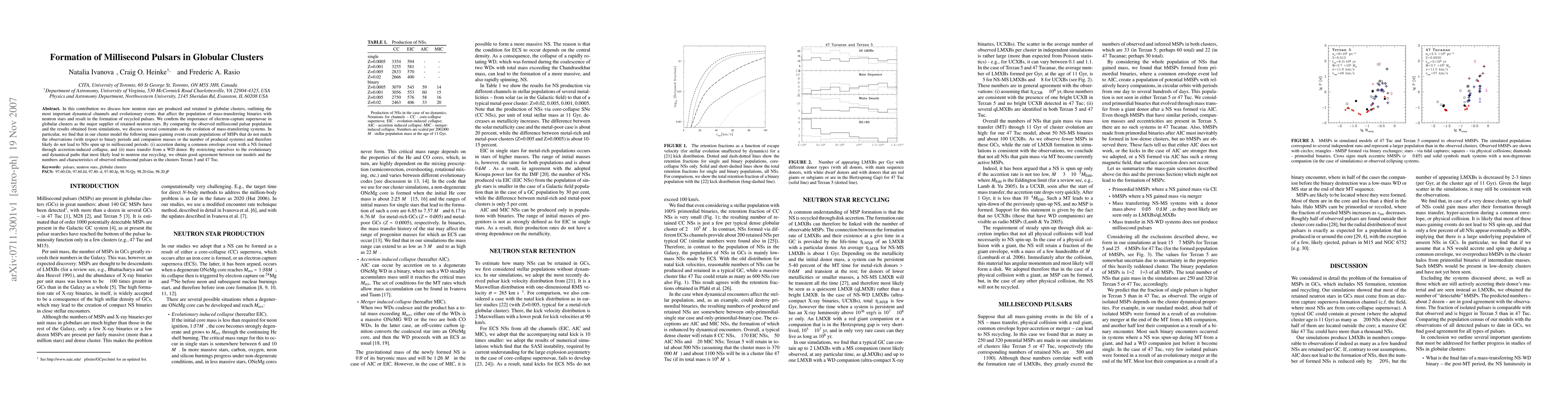 This paper explores the formation of millisecond pulsars in globular clusters, emphasizing the role of electron-capture supernovae in producing retained neutron stars. It finds that certain mass-gaining events do not lead to the formation of observed millisecond pulsars, leading to a refined model that matches the characteristics of observed pulsars in clusters like Terzan 5 and 47 Tuc.