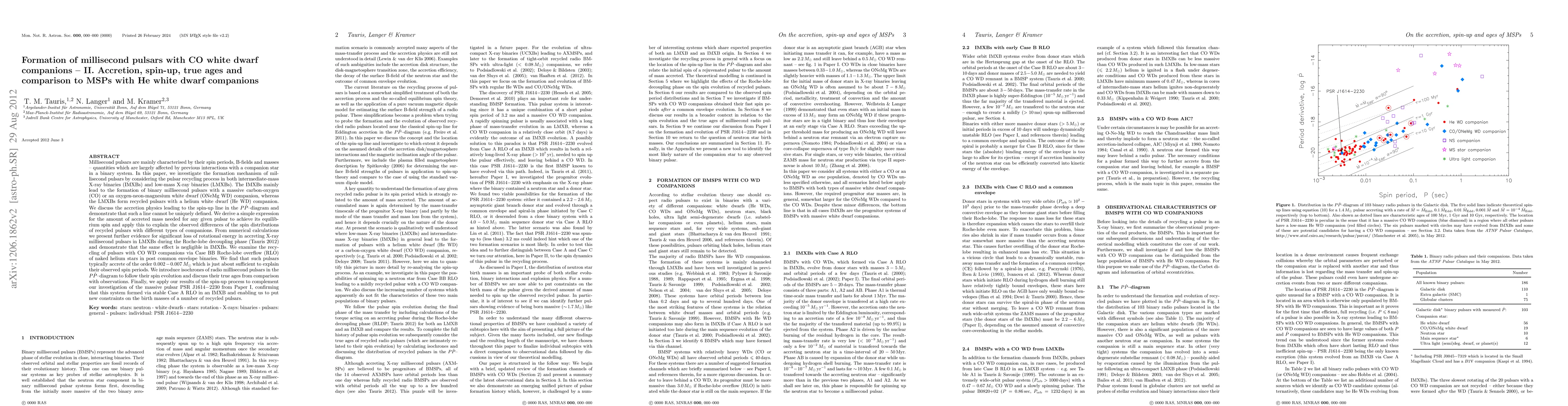 This paper explores the formation and spin-up mechanisms of millisecond pulsars (MSPs) with carbon-oxygen (CO) white dwarf companions, comparing them to MSPs with helium white dwarf companions. It investigates the recycling process in binary systems, showing that accretion dynamics significantly affect the spin periods of MSPs, with notable differences in spin distributions based on companion type.