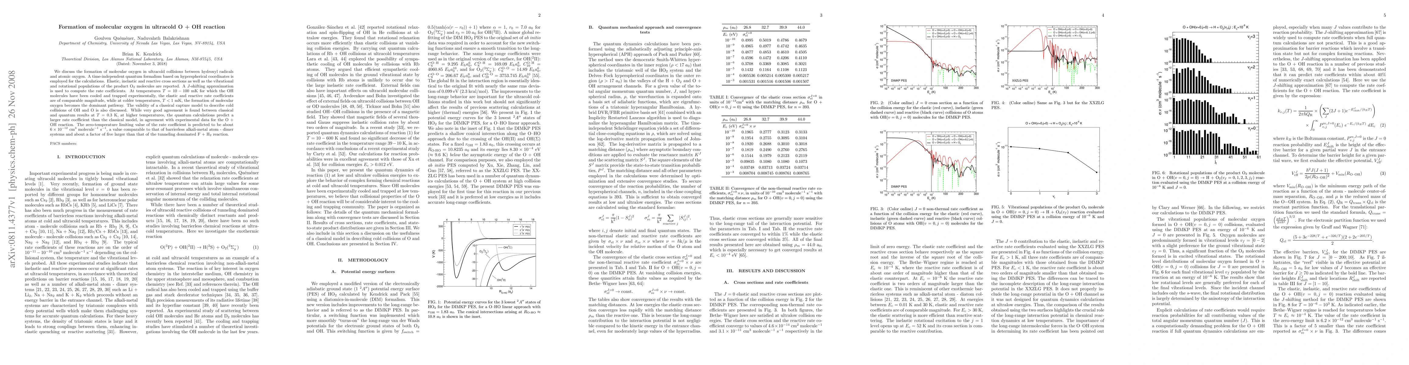 We discuss the formation of molecular oxygen in ultracold collisions between hydroxyl radicals and atomic oxygen. A time-independent quantum formalism based on hyperspherical coordinates is employed for the calculations. Elastic, inelastic and reactive cross sections as well as the vibrational and rotational populations of the product O2 molecules are reported. A J-shifting approximation is used to compute the rate coefficients. At temperatures T = 10 - 100 mK for which the OH molecules have been cooled and trapped experimentally, the elastic and reactive rate coefficients are of comparable magnitude, while at colder temperatures, T < 1 mK, the formation of molecular oxygen becomes the dominant pathway. The validity of a classical capture model to describe cold collisions of OH and O is also discussed. While very good agreement is found between classical and quantum results at T=0.3 K, at higher temperatures, the quantum calculations predict a larger rate coefficient than the classical model, in agreement with experimental data for the O + OH reaction. The zero-temperature limiting value of the rate coefficient is predicted to be about 6.10^{-12} cm^3 molecule^{-1} s^{-1}, a value comparable to that of barrierless alkali-metal atom - dimer systems and about a factor of five larger than that of the tunneling dominated F + H2 reaction.
