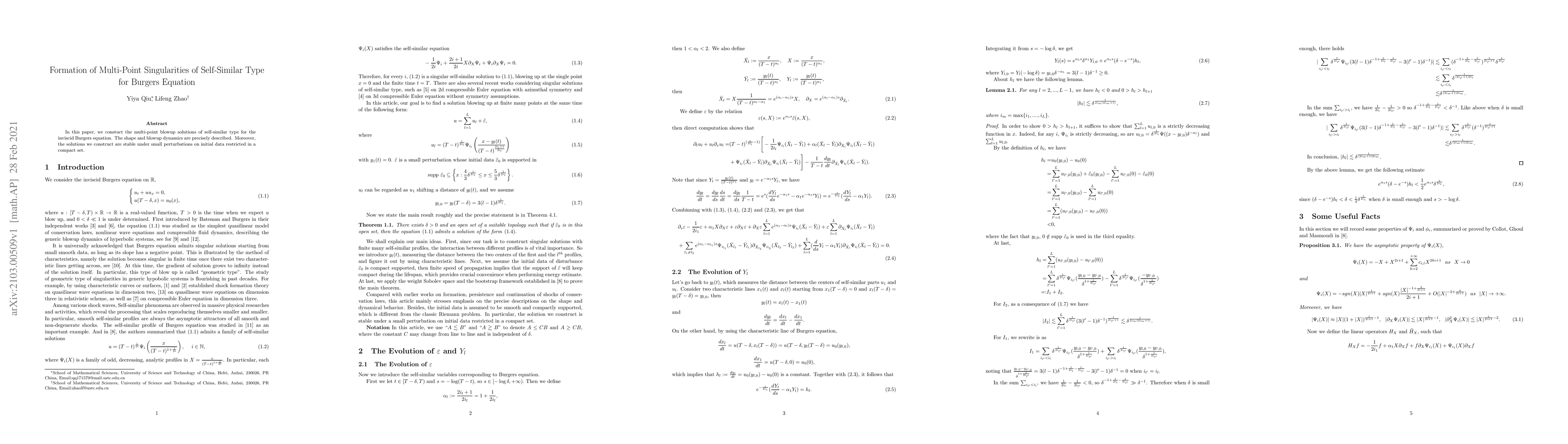In this paper, we constuct the multi-point blowup solutions of self-similar type for the inviscid Burgers equation. The shape and blowup dynamics are precisely described. Moreover, the solutions we construct are stable under small perturbations on initial data restricted in a compact set.