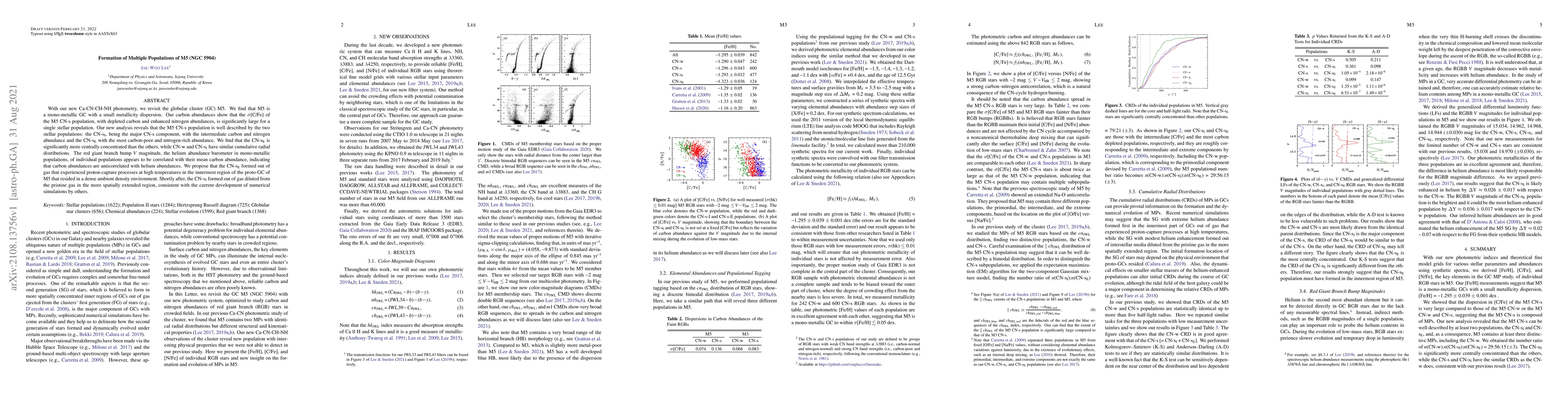 With our new Ca-CN-CH-NH photometry, we revisit the globular cluster (GC) M5. We find that M5 is a mono-metallic GC with a small metallicity dispersion. Our carbon abundances show that the $\sigma$[C/Fe] of the M5 CN-s population, with depleted carbon and enhanced nitrogen abundances, is significantly large for a single stellar population. Our new analysis reveals that the M5 CN-s population is well described by the two stellar populations: the CN-s$_{\rm I}$, being the major CN-s component, with the intermediate carbon and nitrogen abundance and the CN-s$_{\rm E}$ with the most carbon-poor and nitrogen-rich abundance. We find that the CN-s$_{\rm E}$ is significantly more centrally concentrated than the others, while CN-w and CN-s$_{\rm I}$ have similar cumulative radial distributions. The red giant branch bump $V$ magnitude, the helium abundance barometer in mono-metallic populations, of individual populations appears to be correlated with their mean carbon abundance, indicating that carbon abundances are anticorrelated with helium abundances. We propose that the CN-s$_{\rm E}$ formed out of gas that experienced proton-capture processes at high temperatures in the innermost region of the proto-GC of M5 that resided in a dense ambient density environment. Shortly after, the CN-s$_{\rm I}$ formed out of gas diluted from the pristine gas in the more spatially extended region, consistent with the current development of numerical simulations by others.