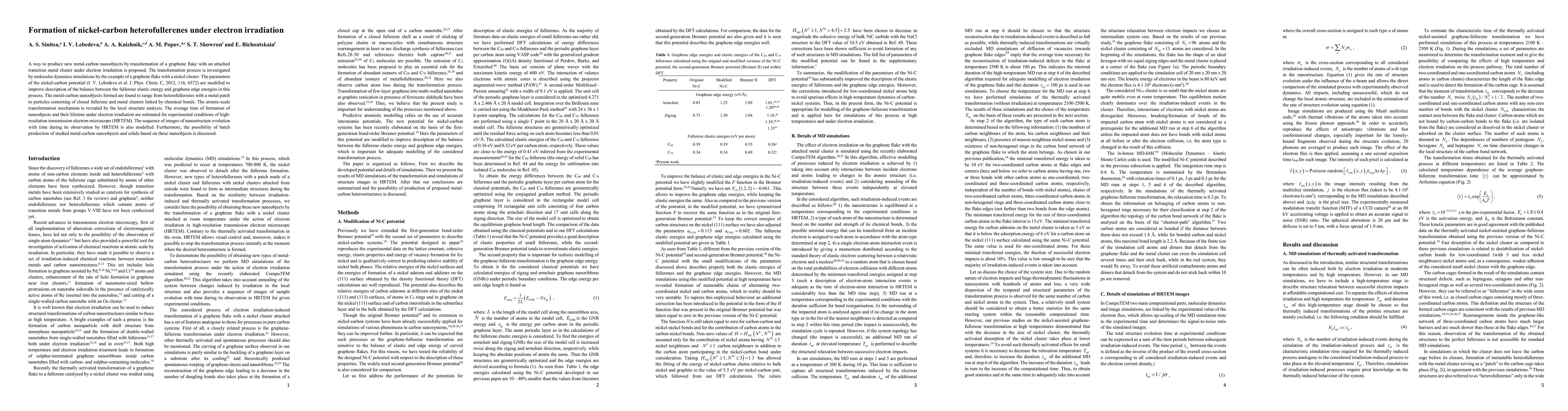 This paper proposes a method for creating nickel-carbon heterofullerenes via electron irradiation of a graphene flake with an attached nickel cluster, revealing their formation mechanism through molecular dynamics simulations and estimating their lifetime under high-resolution transmission electron microscope conditions. The study also discusses potential batch production methods.