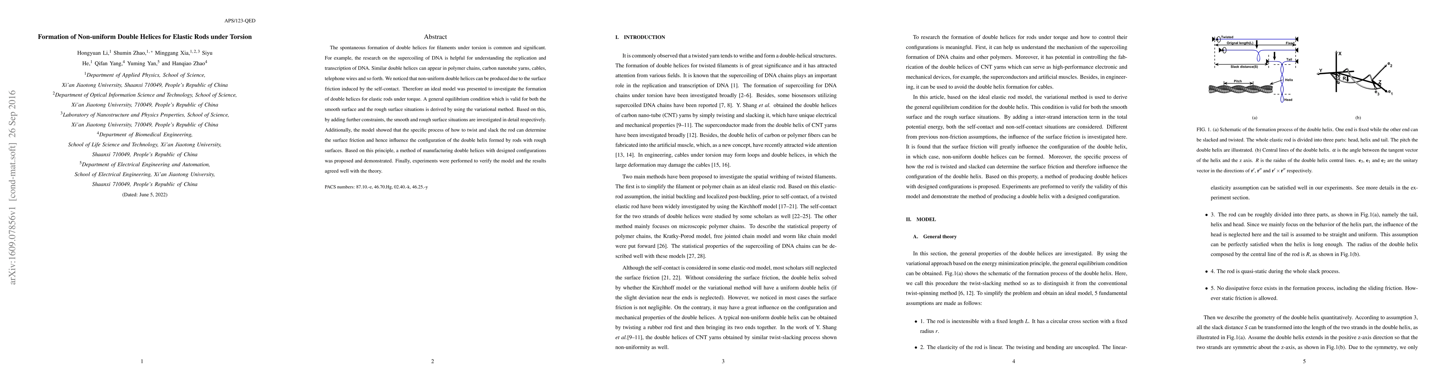 This paper investigates the formation of non-uniform double helices in elastic rods under torsion, deriving a general equilibrium condition for both smooth and rough surfaces. It proposes a method to manufacture double helices with designed configurations based on the twisting process, and experiments confirm the theoretical model.