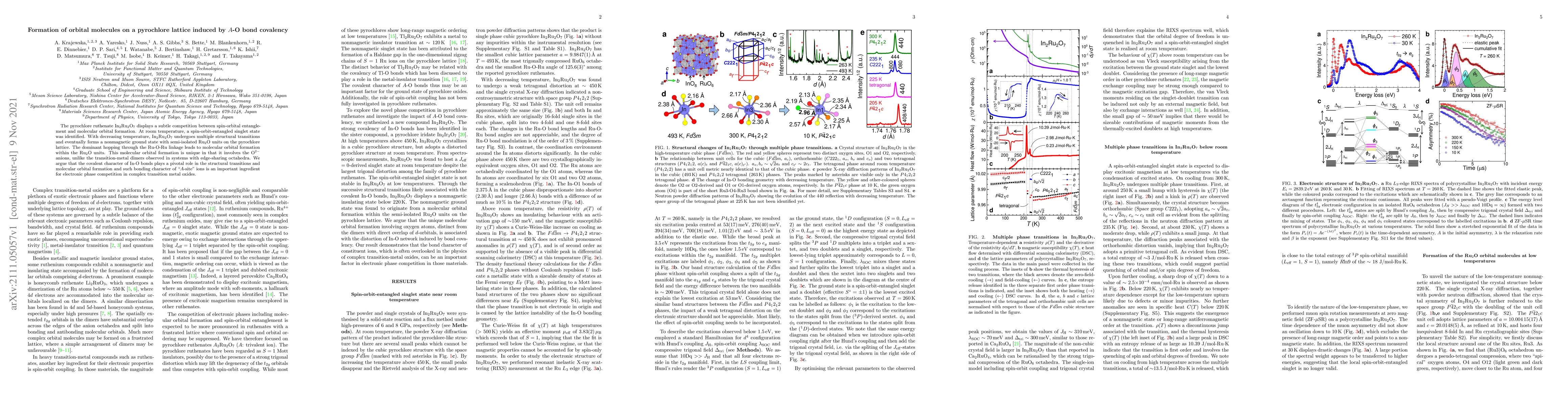 The paper investigates the formation of orbital molecules in In$_2$Ru$_2$O$_7$ due to the covalent nature of In-O bonds, leading to semi-isolated Ru$_2$O units and unique molecular orbital formation involving oxygen anions. This transition is crucial for understanding electronic phase competition in complex transition metal oxides.