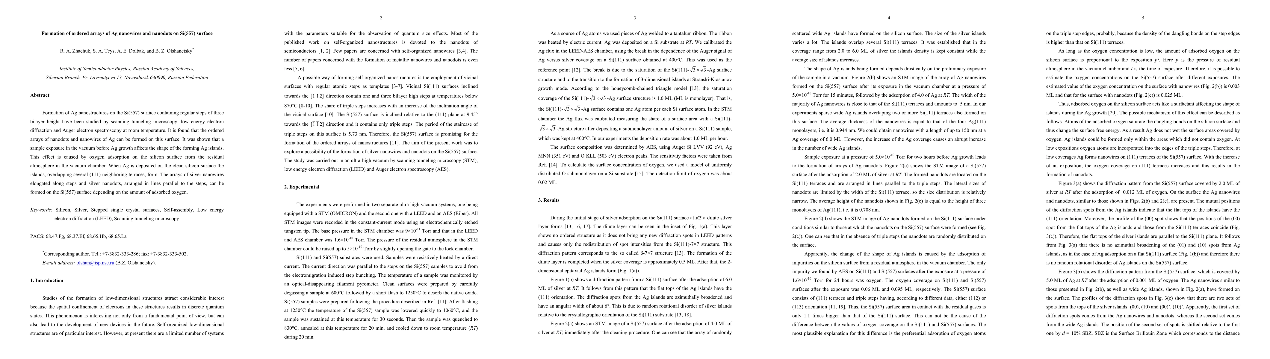 This study investigates the formation of ordered arrays of Ag nanowires and nanodots on a Si(5 5 7) surface, revealing that the shape of Ag islands is influenced by pre-exposure to vacuum, primarily due to oxygen adsorption. Depending on the amount of adsorbed oxygen, either elongated nanowires along steps or nanodots in lines parallel to the steps can be formed.