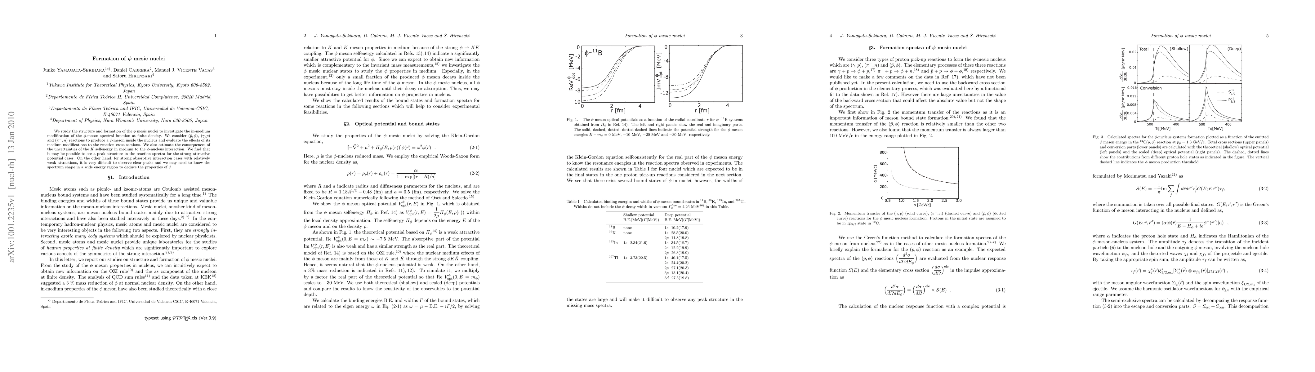 Researchers studied the formation of phi mesic nuclei in nuclear reactions to understand how the phi-meson's properties change at finite density. They found that clear peaks may appear in reaction spectra for certain interactions but require a wide energy range to identify properties.