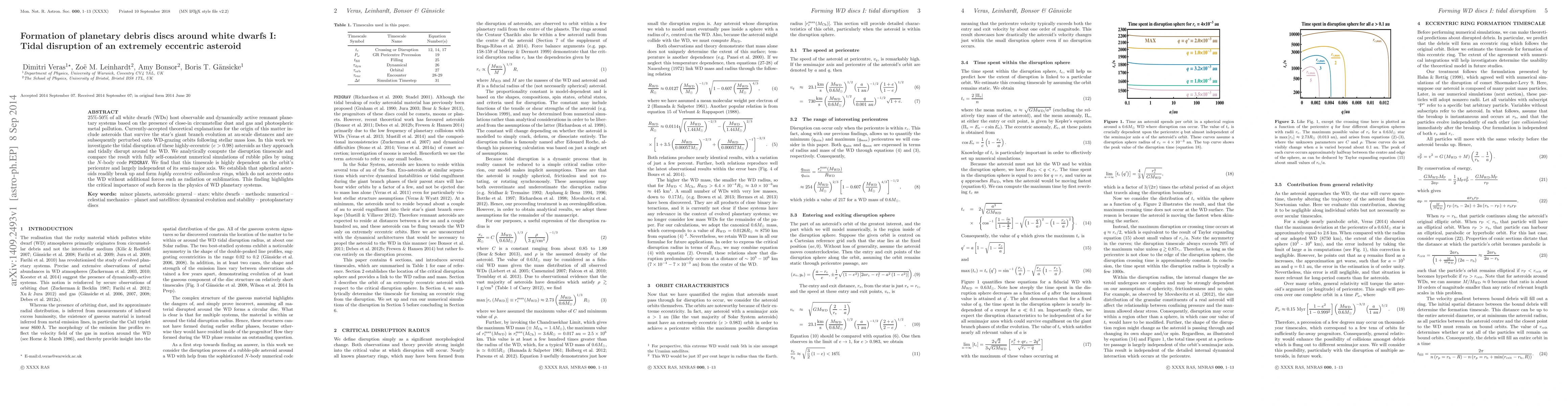 This paper investigates the tidal disruption of highly eccentric asteroids around white dwarfs, finding that their disruption timescale is highly dependent on pericentre distance. The study reveals that these asteroids form eccentric debris rings, emphasizing the necessity of additional forces like radiation or sublimation to prevent accretion onto the white dwarf.