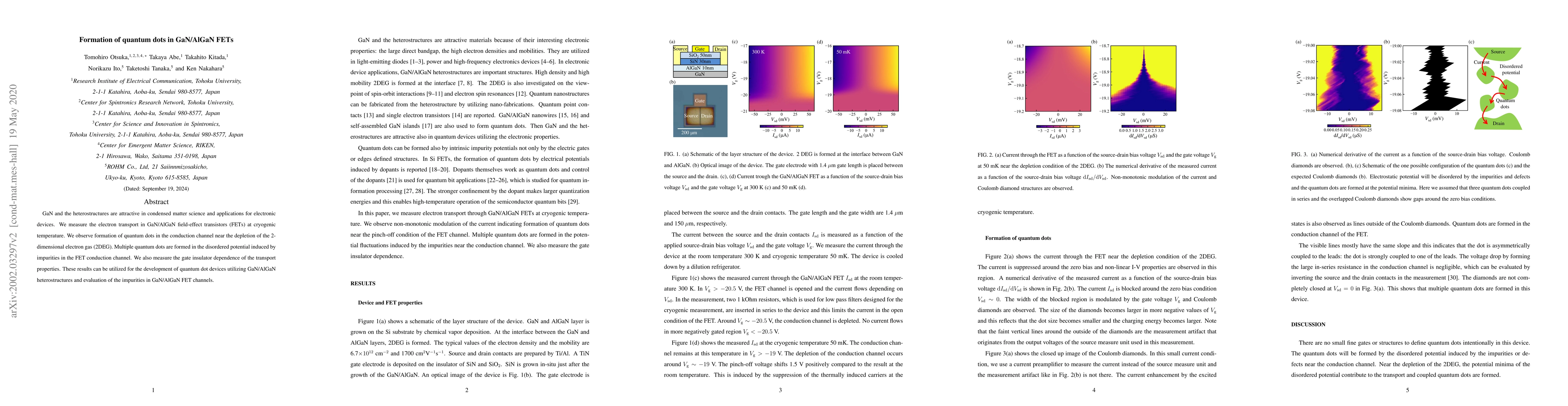 This research investigates electron transport in GaN/AlGaN FETs at cryogenic temperatures, observing quantum dot formation in the conduction channel near the 2DEG depletion, attributed to impurity-induced disorder. The study also evaluates the impact of gate insulator on transport properties, with implications for quantum dot device development and impurity evaluation.
