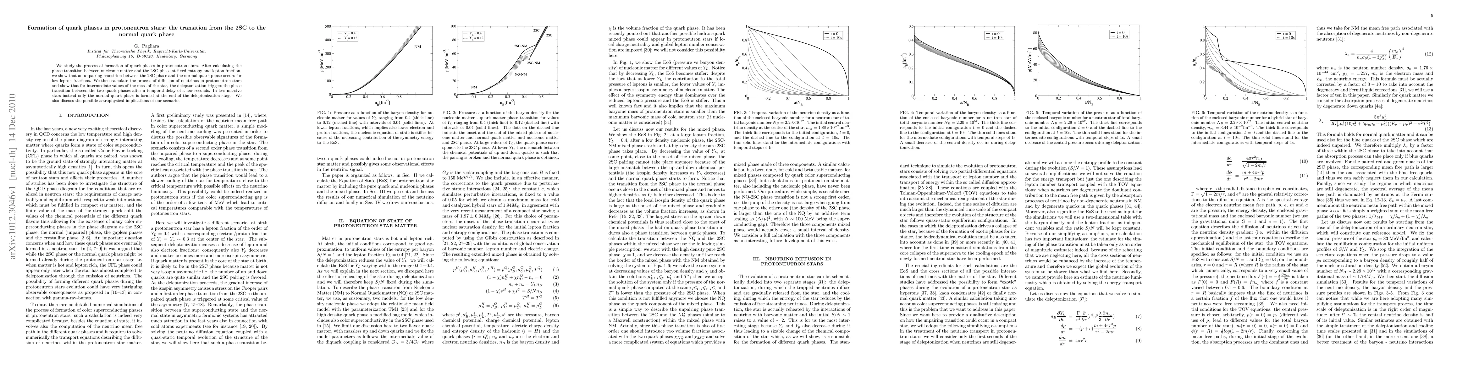 This paper investigates the formation of quark phases in protoneutron stars, demonstrating an unpairing transition from the 2SC to the normal quark phase for low lepton fractions. It finds that deleptonization, triggered by neutrino diffusion, initiates this transition after a few seconds in intermediate-mass stars, while less massive stars only form the normal quark phase.