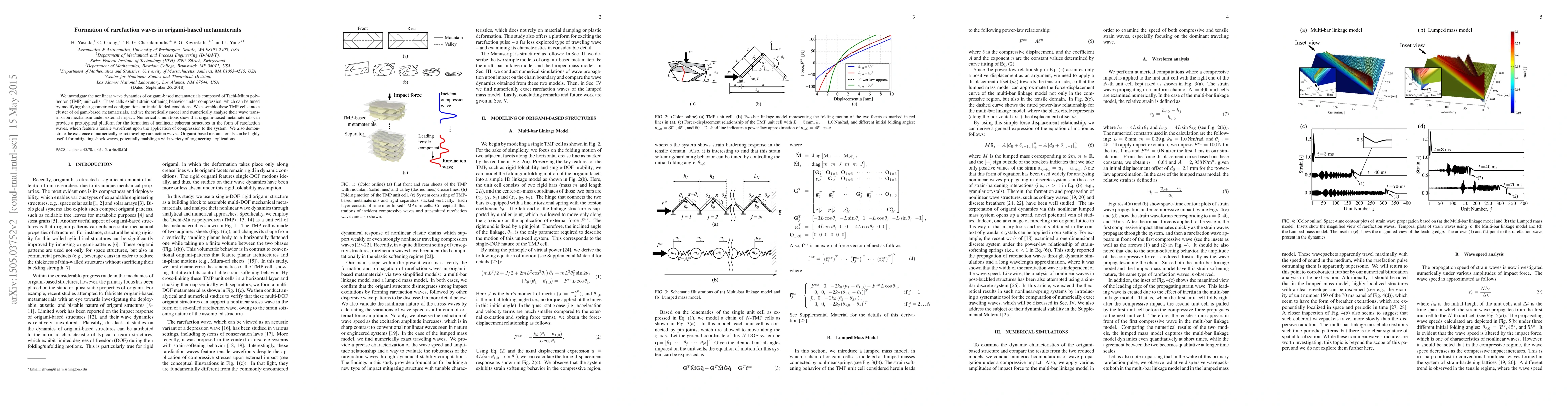 This paper explores the nonlinear wave dynamics in origami-based metamaterials composed of Tachi-Miura polyhedron unit cells, demonstrating their ability to form rarefaction waves under compression. The study suggests these materials could be effective in mitigating shock waves, with potential applications in engineering.