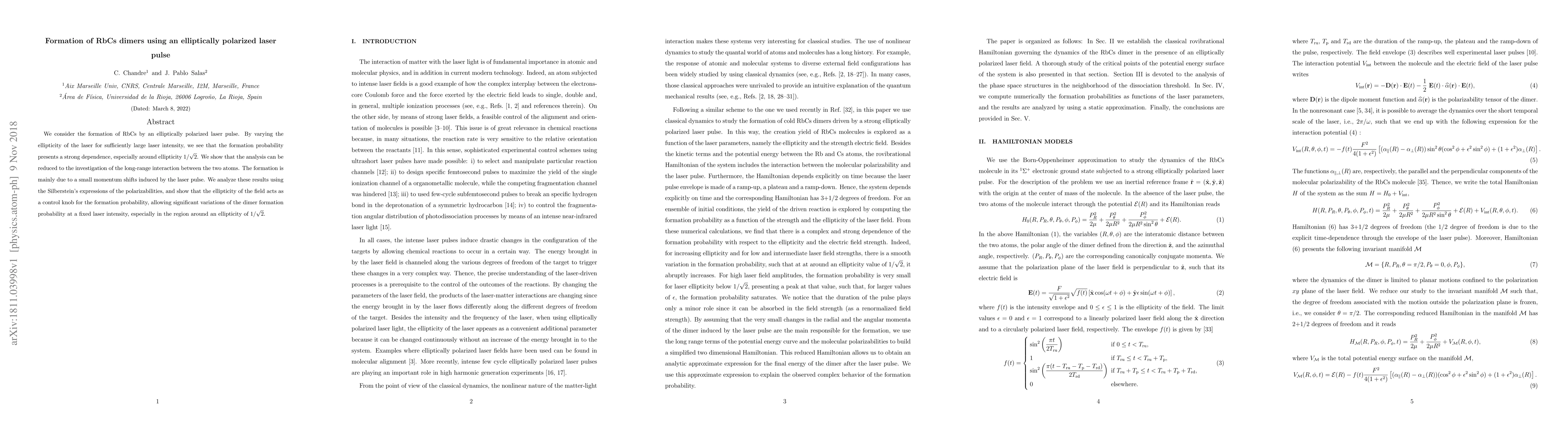 This paper explores the formation of RbCs dimers using elliptically polarized laser pulses, demonstrating a strong dependence on the laser's ellipticity, particularly around an ellipticity of 1/√2. The study reveals that the dimer formation is primarily due to small momentum shifts induced by the laser, controlled by the polarizabilities as described by Silberstein.