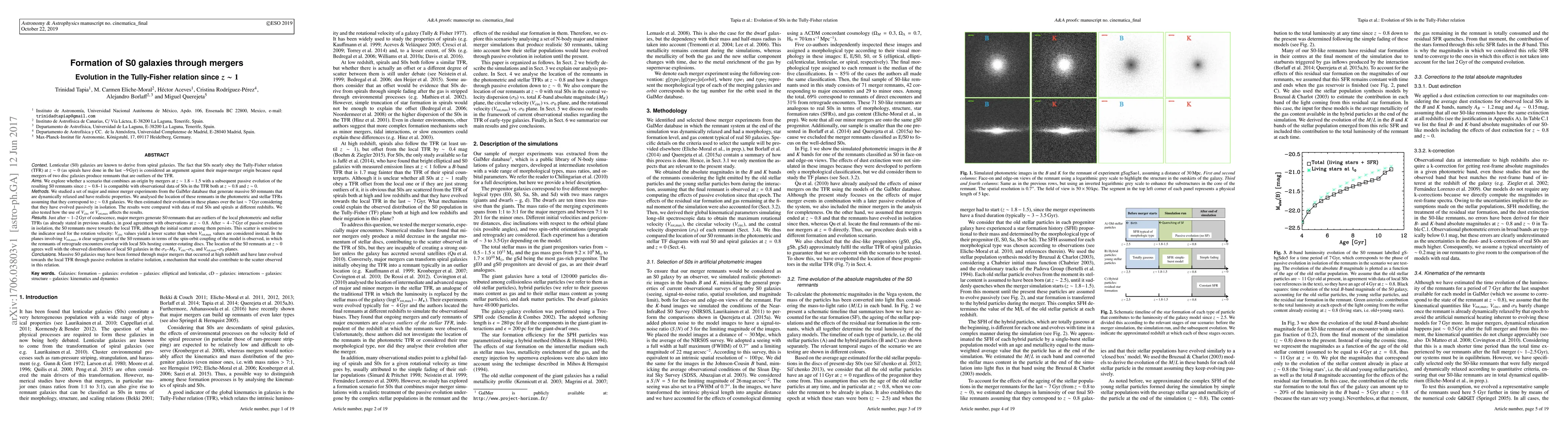 This study investigates the formation of S0 galaxies via mergers at high redshift and their subsequent evolution in the Tully-Fisher relation, finding that major mergers generate S0 remnants initially outliers in the TFR, which then move towards the local TFR after 4-7 Gyr of passive evolution. The observed scatter in the TFR is sensitive to the rotation velocity indicator used.