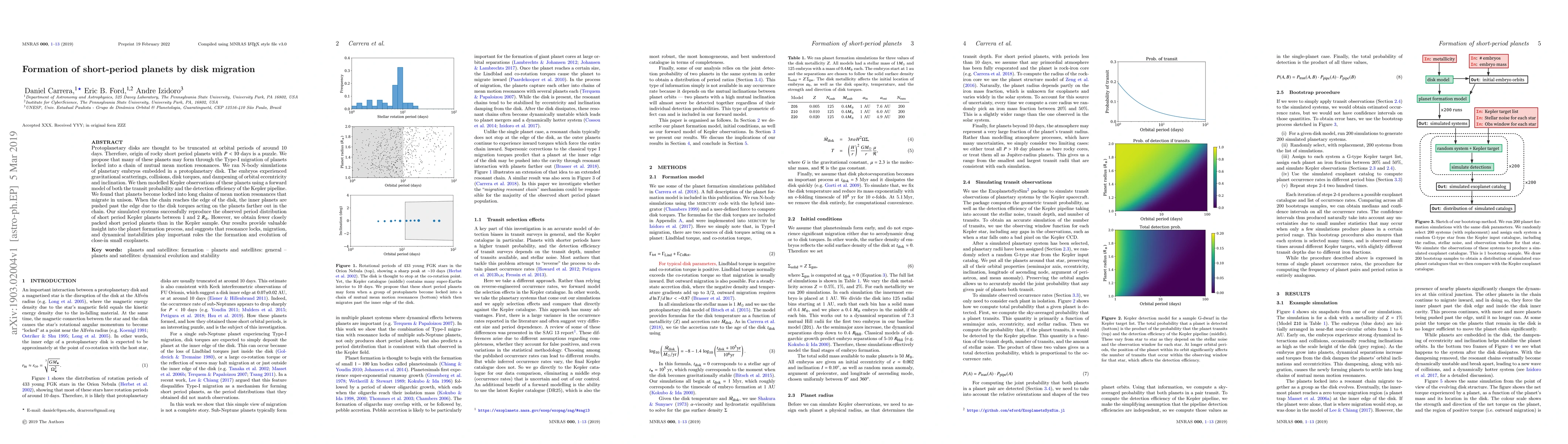 This research proposes that short-period planets form via Type-I migration in chains of mutual mean motion resonances in protoplanetary disks. Simulations show that these chains migrate together and are pushed outward, explaining the observed period distribution of short-period exoplanets.