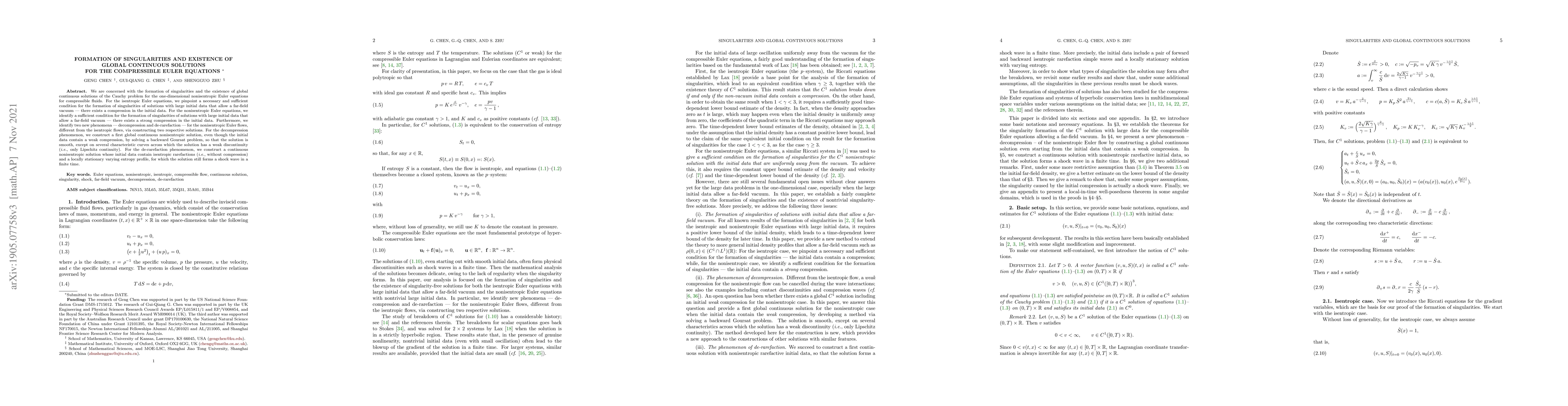 This paper investigates the formation of singularities and global continuous solutions in the one-dimensional non-isentropic Euler equations for compressible fluids. It identifies conditions for singularity formation, including a necessary condition for isentropic equations and a sufficient condition for non-isentropic ones, and introduces new phenomena like decompression and de-rarefaction.