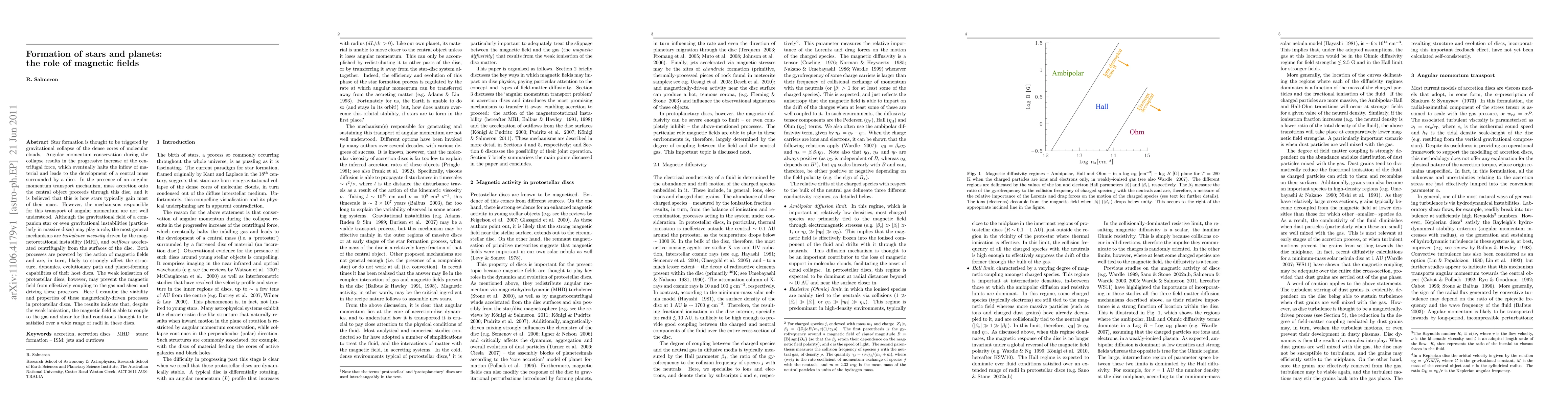 This paper explores the role of magnetic fields in the formation of stars and planets, focusing on angular momentum transport mechanisms in protostellar discs. Despite the weak ionisation in these discs, magnetic fields can still couple to the gas and drive turbulence and outflows, which are crucial for star and planet formation.