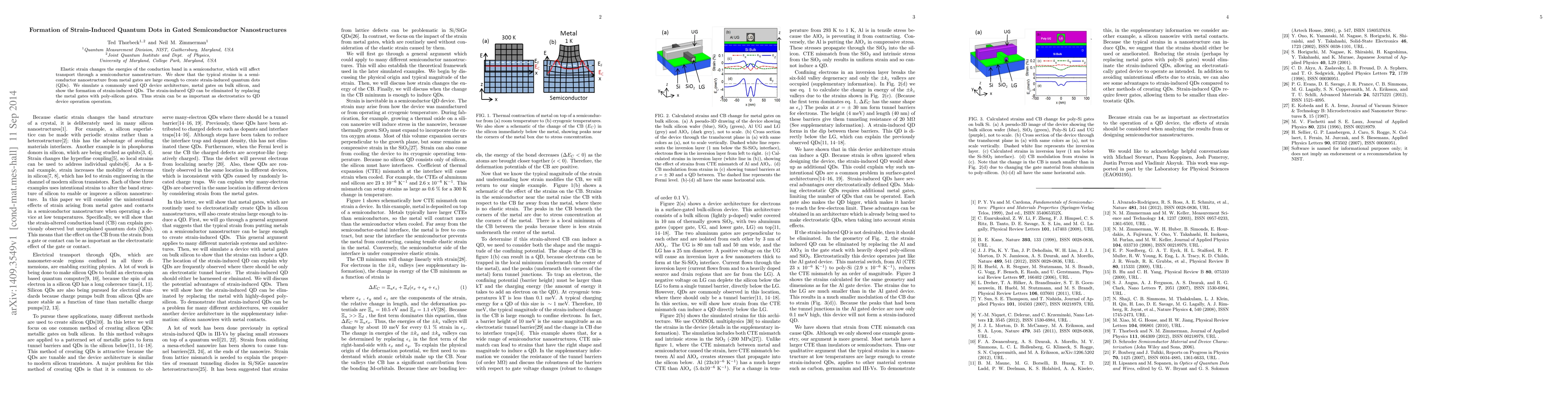 The research demonstrates that elastic strain from metal gates in semiconductor nanostructures can induce the formation of quantum dots (QDs) by altering conduction band energies. Replacing metal gates with poly-silicon gates eliminates these strain-induced QDs, highlighting the significant role of strain in QD device operation.