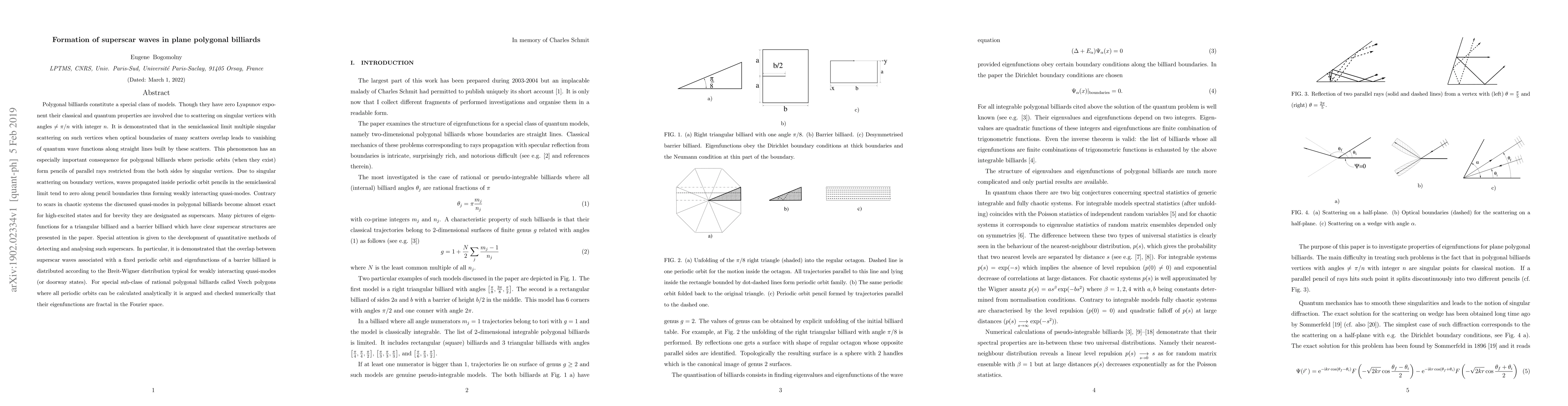 Polygonal billiards constitute a special class of models. Though they have zero Lyapunov exponent their classical and quantum properties are involved due to scattering on singular vertices. It is demonstrated that in the semiclassical limit multiple singular scattering on such vertices when optical boundaries of many scatters overlap leads to vanishing of quantum wave functions along straight lines built by these scatters. This phenomenon has an especially important consequence for polygonal billiards where periodic orbits (when they exist) form pencils of parallel rays restricted from the both sides by singular vertices. Due to singular scattering on boundary vertices, waves propagated inside periodic orbit pencils in the semiclassical limit tend to zero along pencil boundaries thus forming weakly interacting quasi-modes. Contrary to scars in chaotic systems the discussed quasi-modes in polygonal billiards become almost exact for high-excited states and for brevity they are designated as superscars. Many pictures of eigenfunctions for a triangular billiard and a barrier billiard which have clear superscar structures are presented in the paper. Special attention is given to the development of quantitative methods of detecting and analysing such superscars. In particular, it is demonstrated that the overlap between superscar waves associated with a fixed periodic orbit and eigenfunctions of a barrier billiard is distributed according to the Breit-Wigner distribution typical for weakly interacting quasi-modes (or doorway states). For special sub-class of rational polygonal billiards called Veech polygons where all periodic orbits can be calculated analytically it is argued and checked numerically that their eigenfunctions are fractal in the Fourier space.