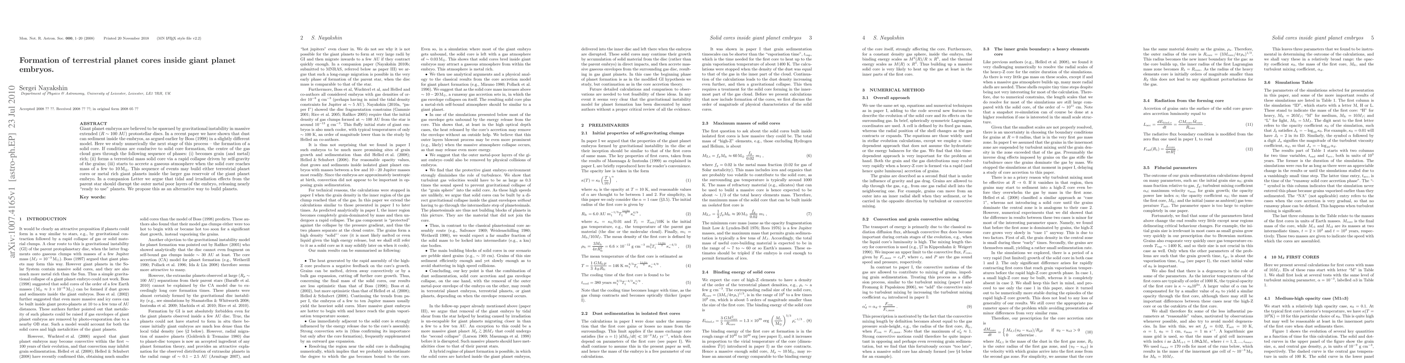 This paper investigates the formation of terrestrial planet cores within giant planet embryos through numerical simulations, showing that solid cores can rapidly form via self-gravity-driven collapse of grain-rich regions. It suggests an alternative planet formation mechanism where embryos build either terrestrial cores or metal-rich giant planets.