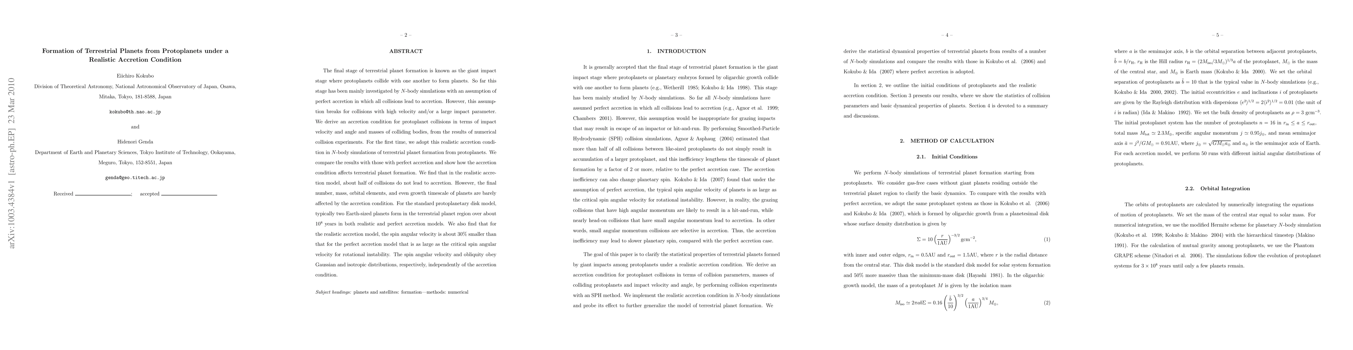 This paper investigates terrestrial planet formation using N-body simulations under realistic accretion conditions, finding that while about half of protoplanet collisions do not lead to accretion, the final number and characteristics of planets remain largely unaffected. The realistic model shows a 30% reduction in spin angular velocity compared to the perfect accretion model.