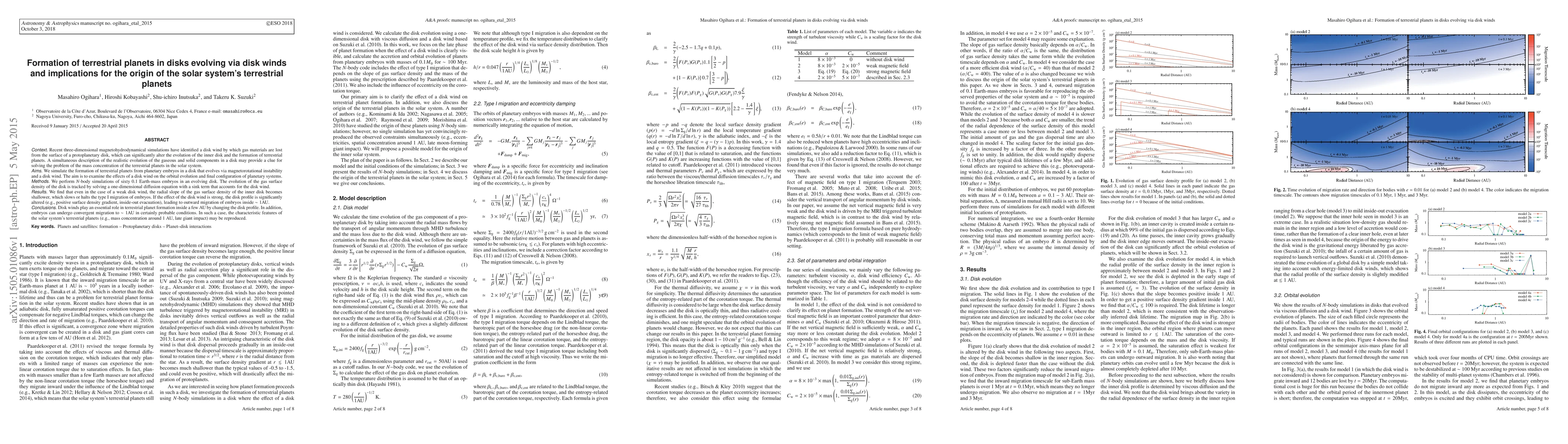 The study uses three-dimensional magnetohydrodynamical simulations and N-body simulations to model the formation of terrestrial planets in evolving protoplanetary disks with disk winds. The evolution of gas surface density is tracked using a one-dimensional diffusion equation with a sink term for the disk wind.