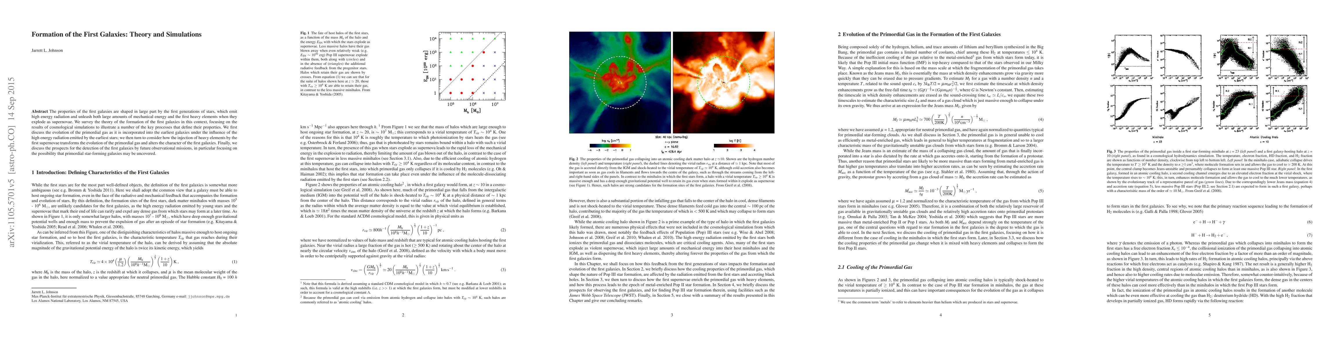 The formation of the first galaxies is shaped by high-energy radiation from early stars and heavy elements from supernovae explosions, which alter their properties over time. Future observational missions may detect primordial star-forming galaxies, providing insights into the early universe.
